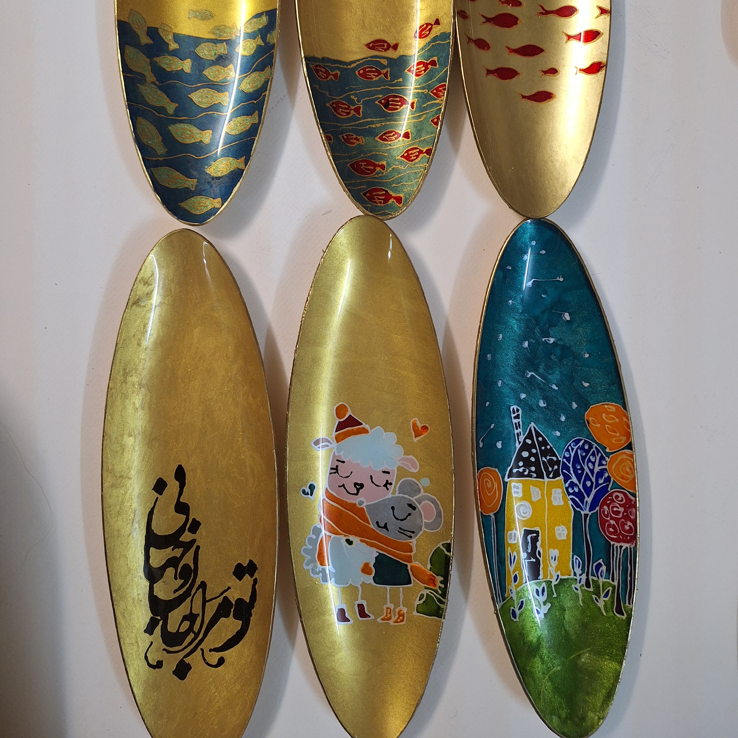 دیس ماهی خوری ویترای نقاشی شده پشت شیشه و کار دست رنگ ثابت و ضد آب قابل شست و شو
