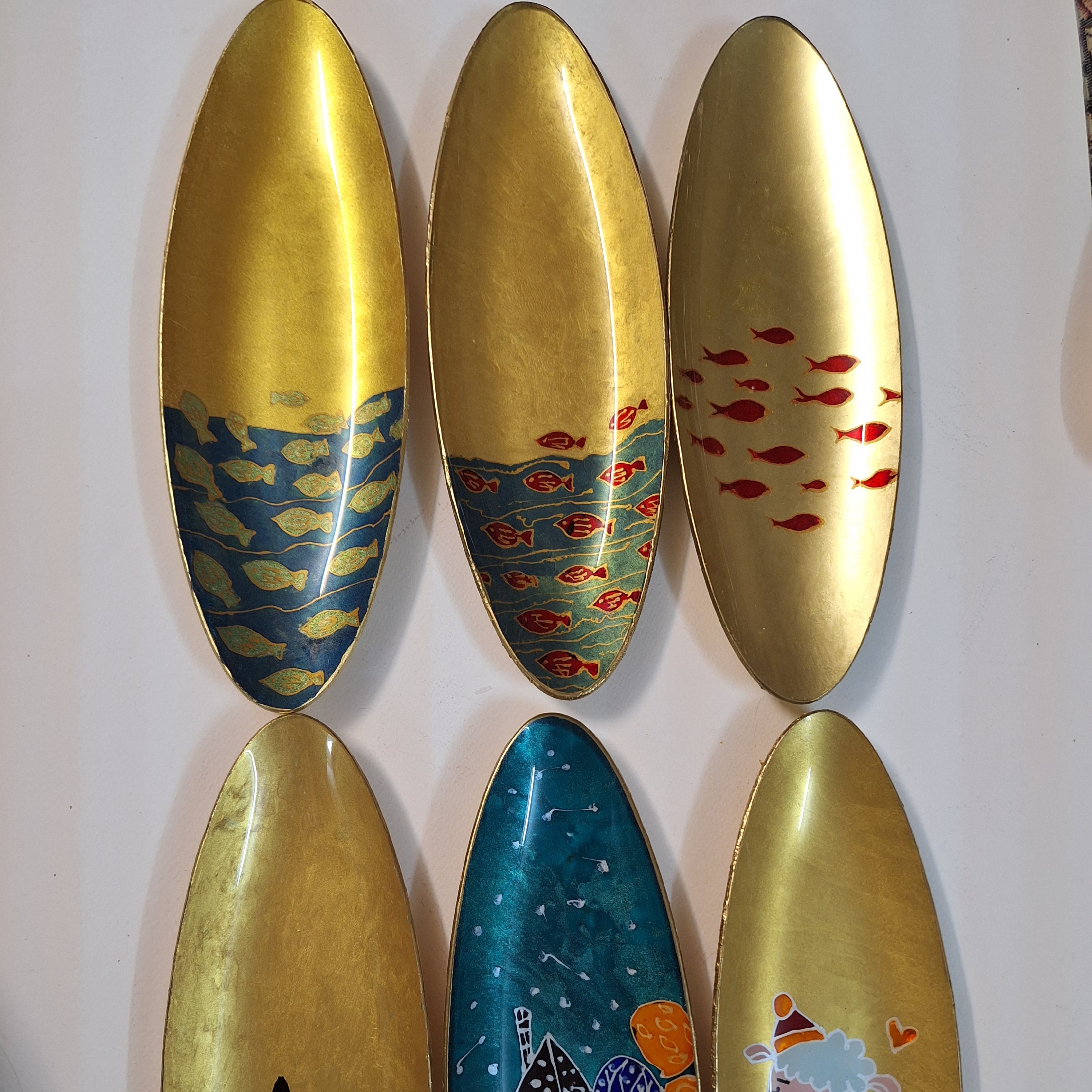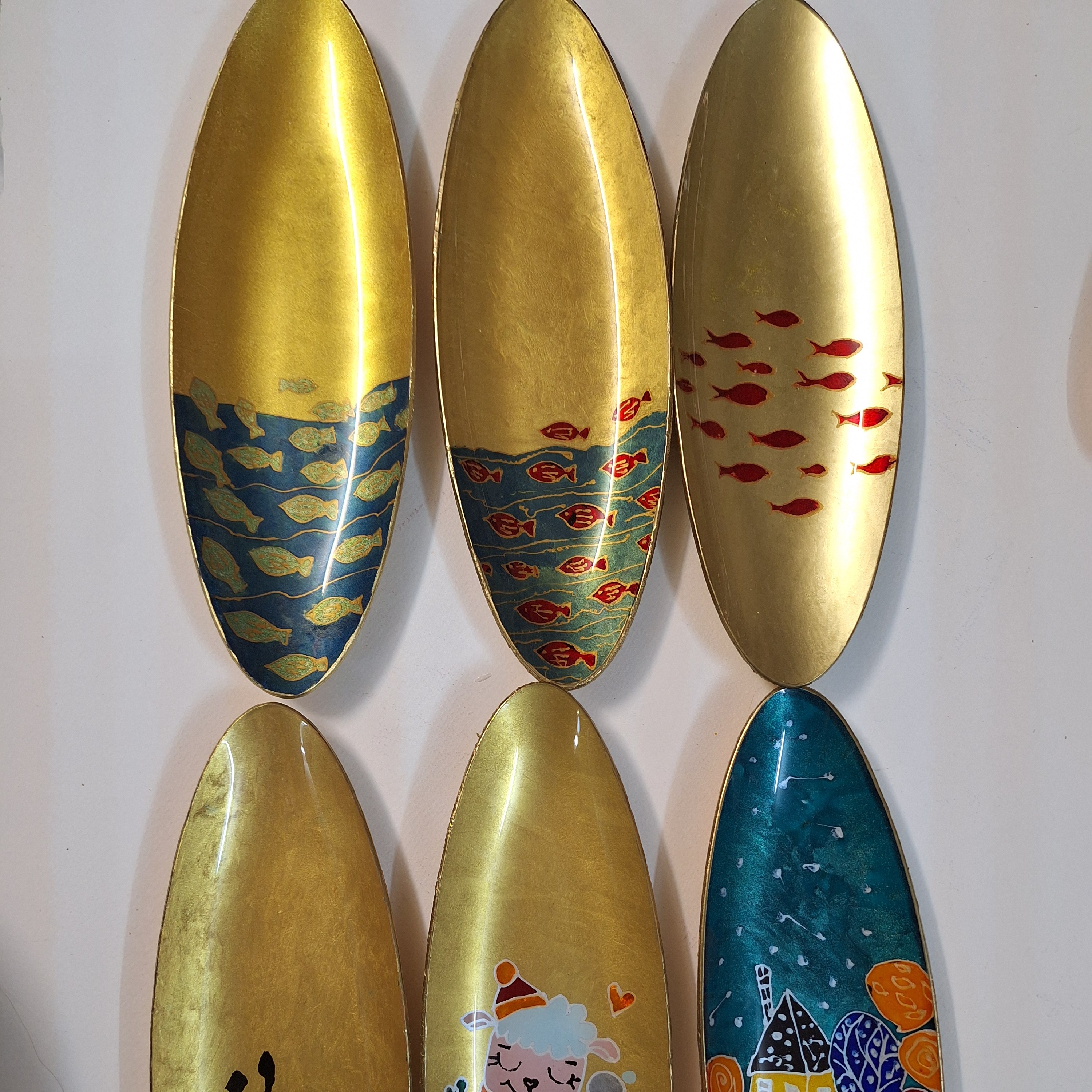 دیس ماهی خوری ویترای نقاشی شده پشت شیشه و کار دست رنگ ثابت و ضد آب قابل شست و شو