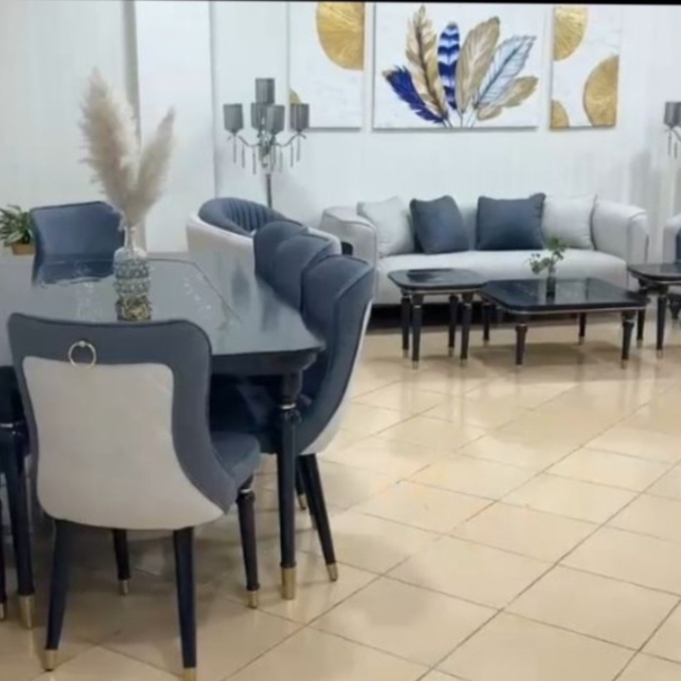 مبلمان 7نفره پاناما و دیانا همراه ناهارخوری 4نفره با پارچه دیاموند و جاسمین در رنگبندی متنوع. فوم سرد. کیفیت بسیار خوب پایه چوب یا فلزی فورتیک با سلیقه مشتری