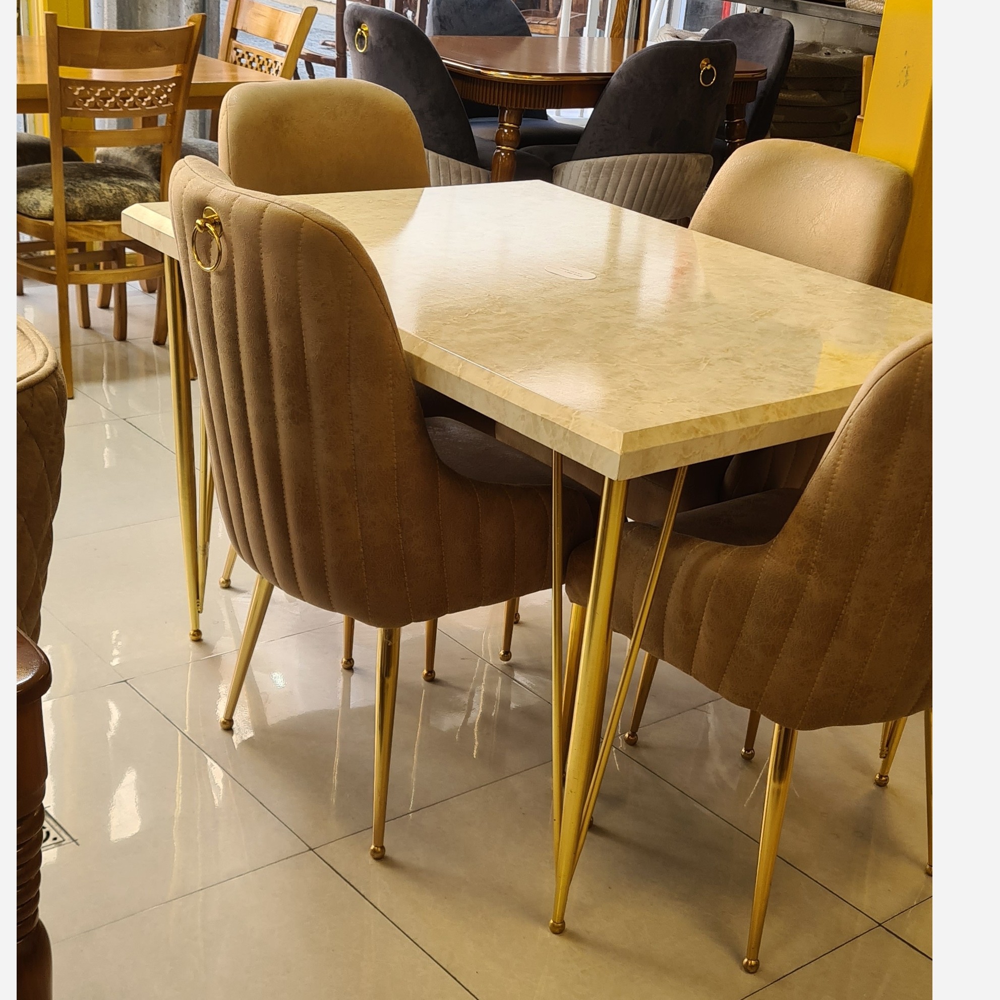 میز و صندلی ناهارخوری مدله پایه فلزی 🟢صفحه میز: وکیوم 🟢پایه میز : فلزهای آبکاری شده درجه یک 🟢پایه میز و صفحه میز پیچ و مهره است و قابلیت بازو بسته شدن دارد 🟢 طرح و رنگه صفحه میز قابل تغییره 🟢ابعاد صفحه میز : 120×80 سانتیمتر 🔴کلاف صندلی چوبه روس و پایه صندلی فلز آبکاری شده است 🔴پارچه صندلی: به دلخواه مشتری قابل تغییره 🟢اسفنج کف:35 کیلویی رنگ بندی فلزهای ناهارخوری: هم طلایی و هم نقره ای قابل سفارشه 🔴برای تغییره رنگه چوب و پارچه 10 الی 14 روز کاری زمان لازمه 🟢هزینه و باربری و اسنپ به عهده مشتری عزیز میباشد🌹❤️