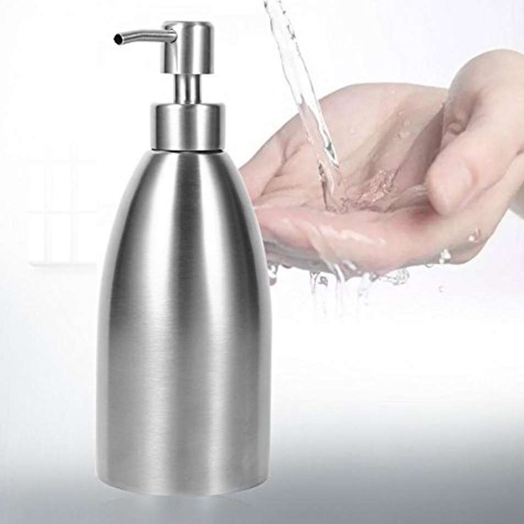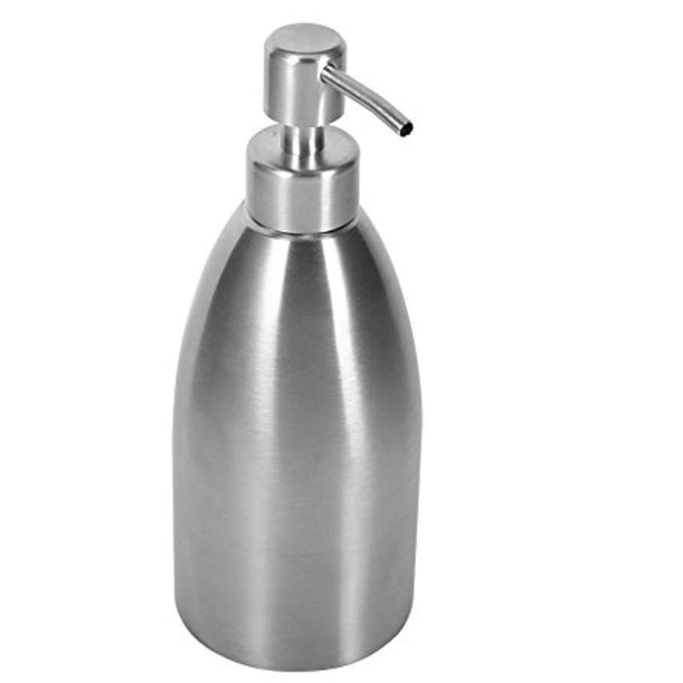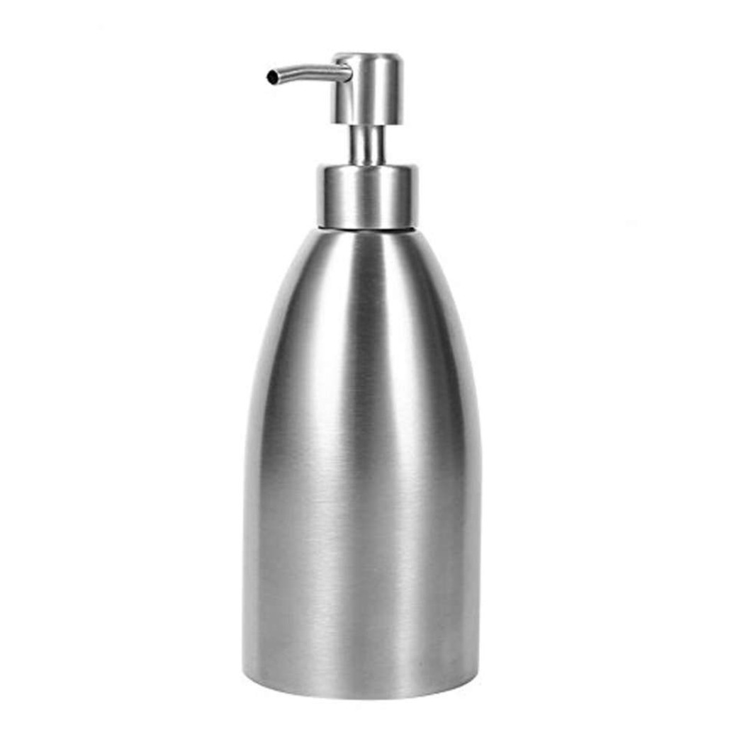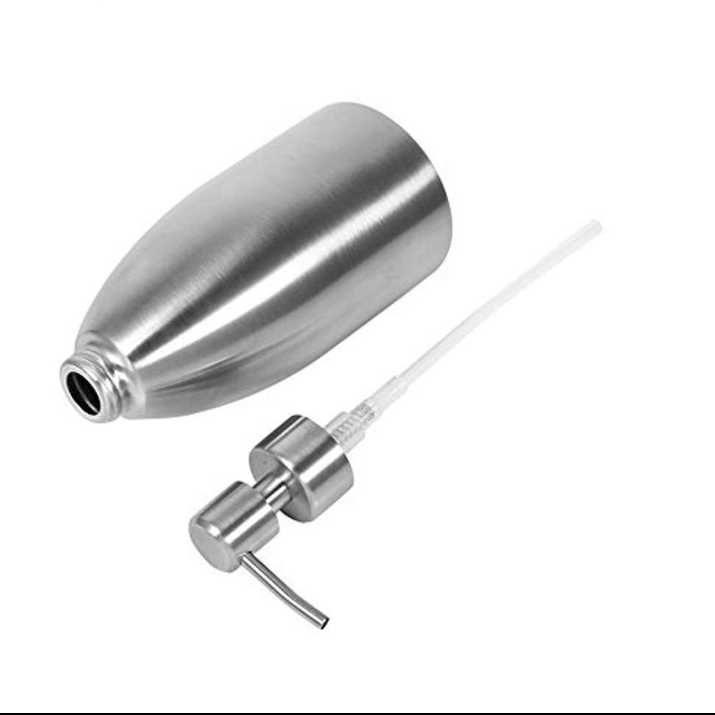 مخزن وپمپ مایع دستشویی مایع ظرفشویی استیل ضد زنگ مات وبا کیفیت حدود 400 میلی لیتر قطر 8 ارتفاع 20