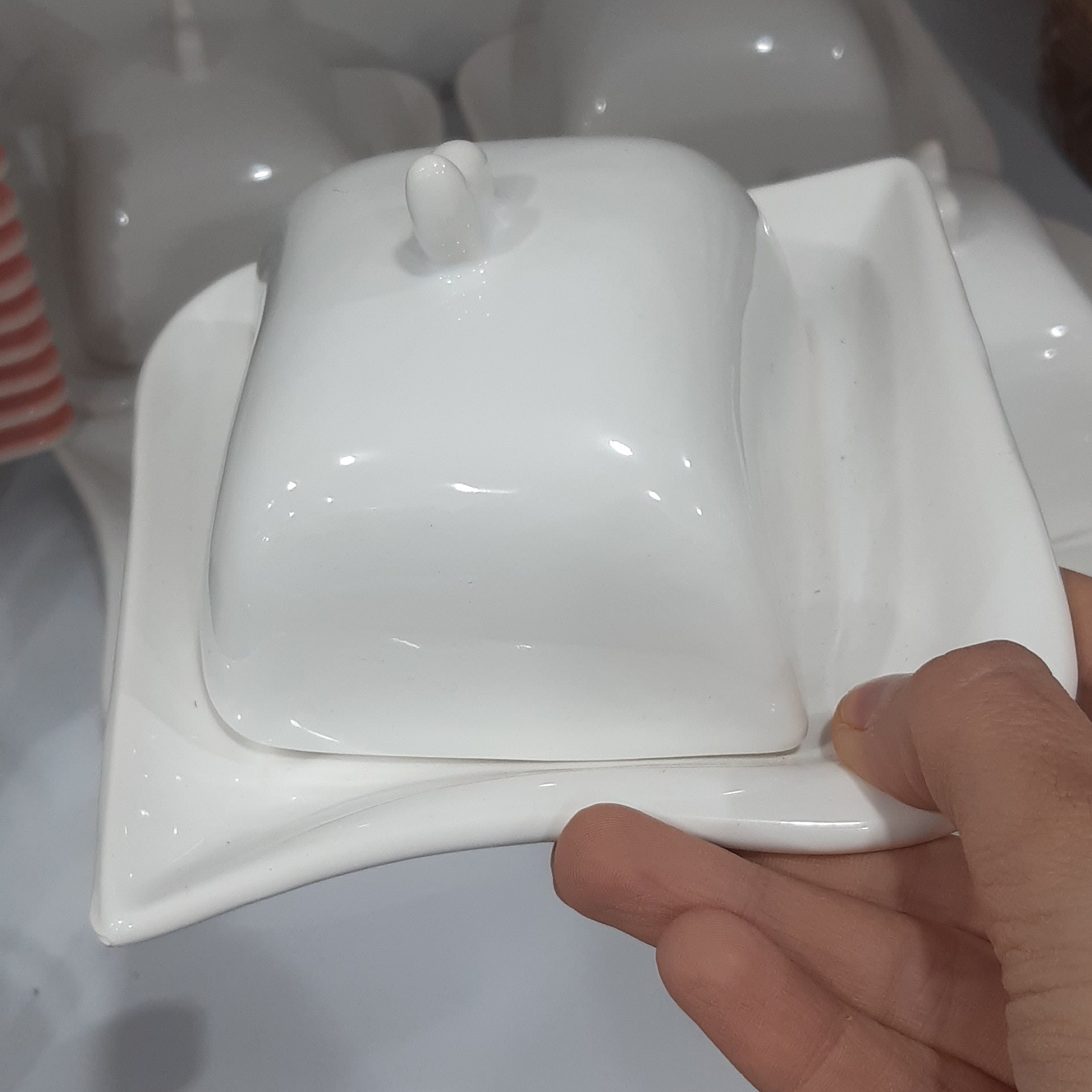 کره خوری سرامیکی درب دار سفید برای پنیر و کره