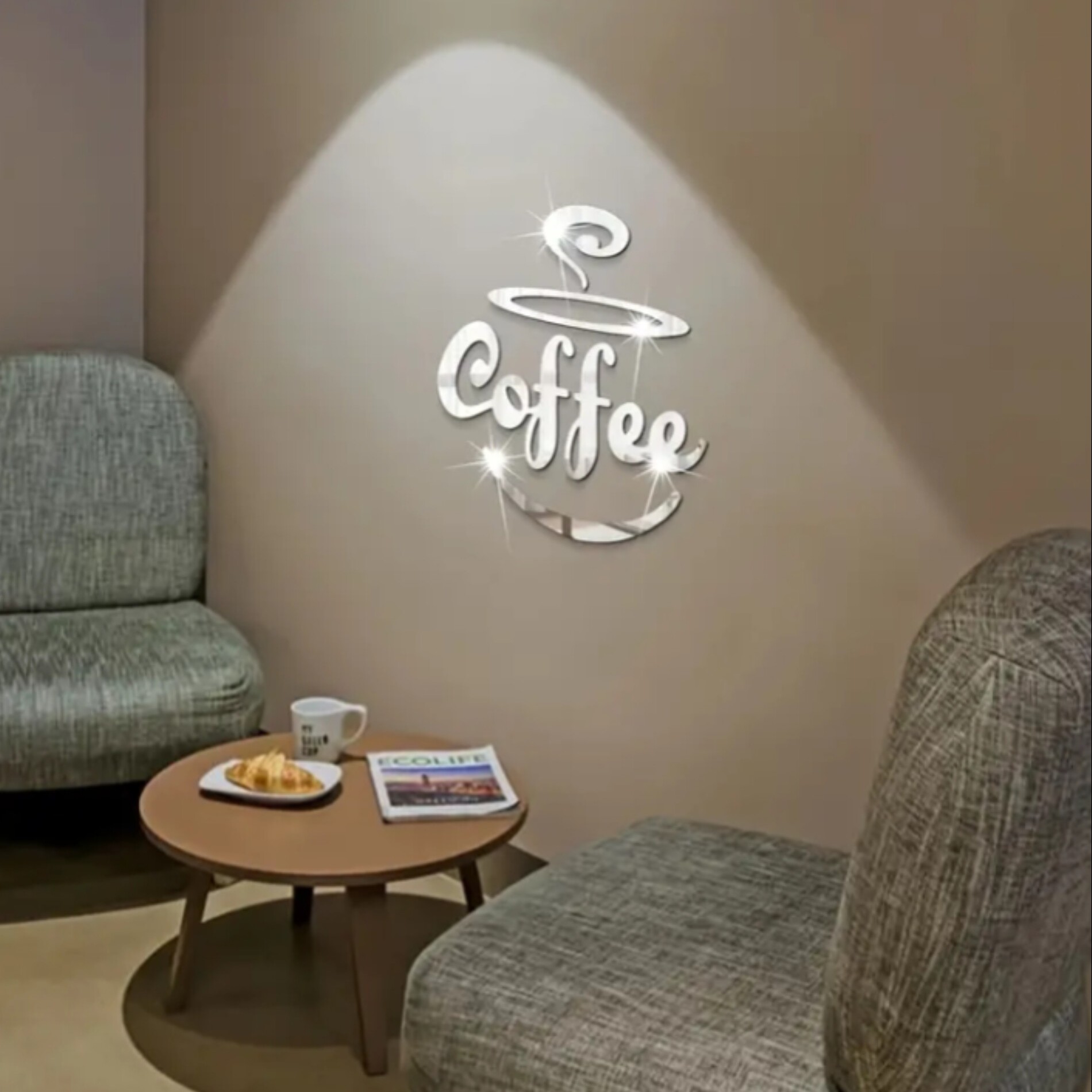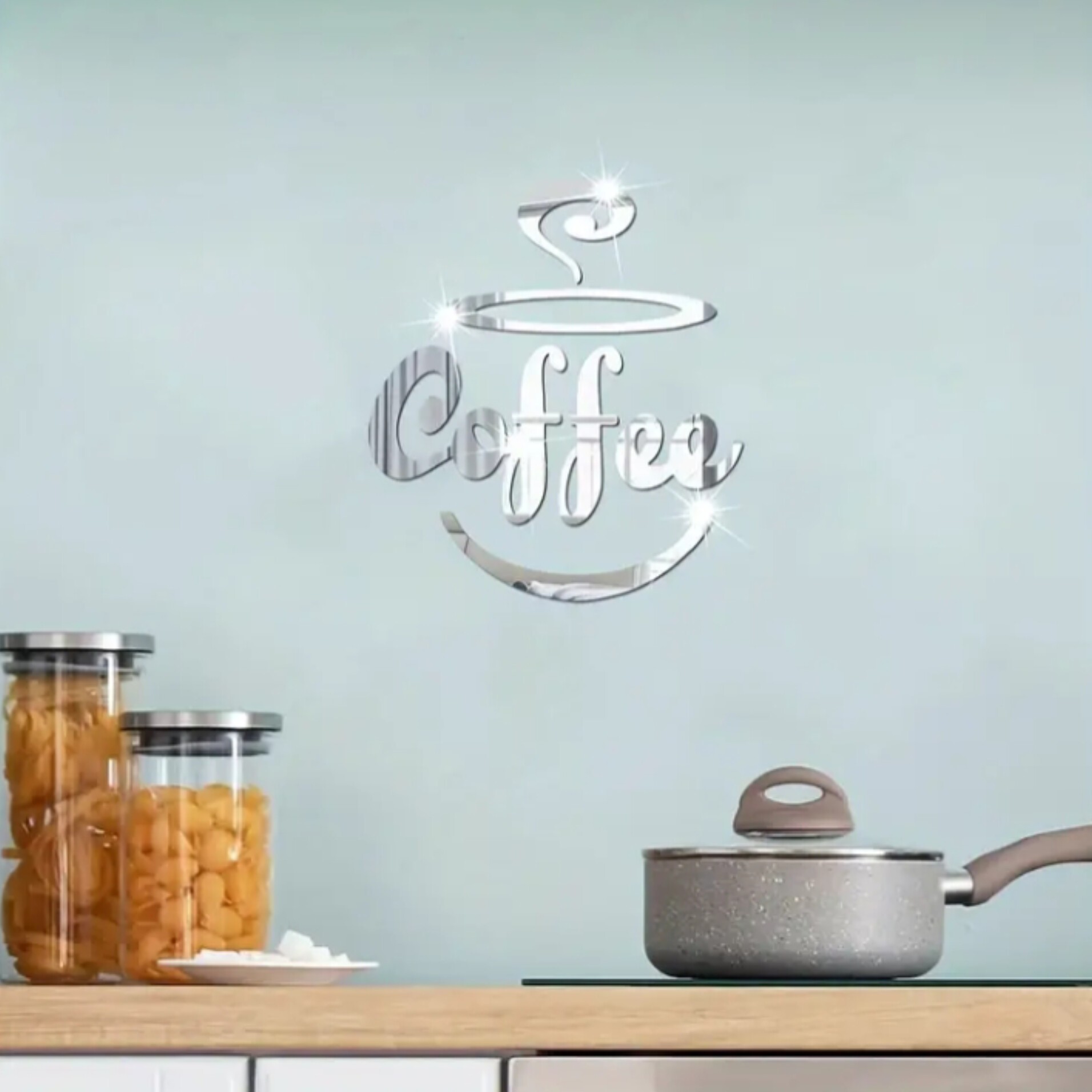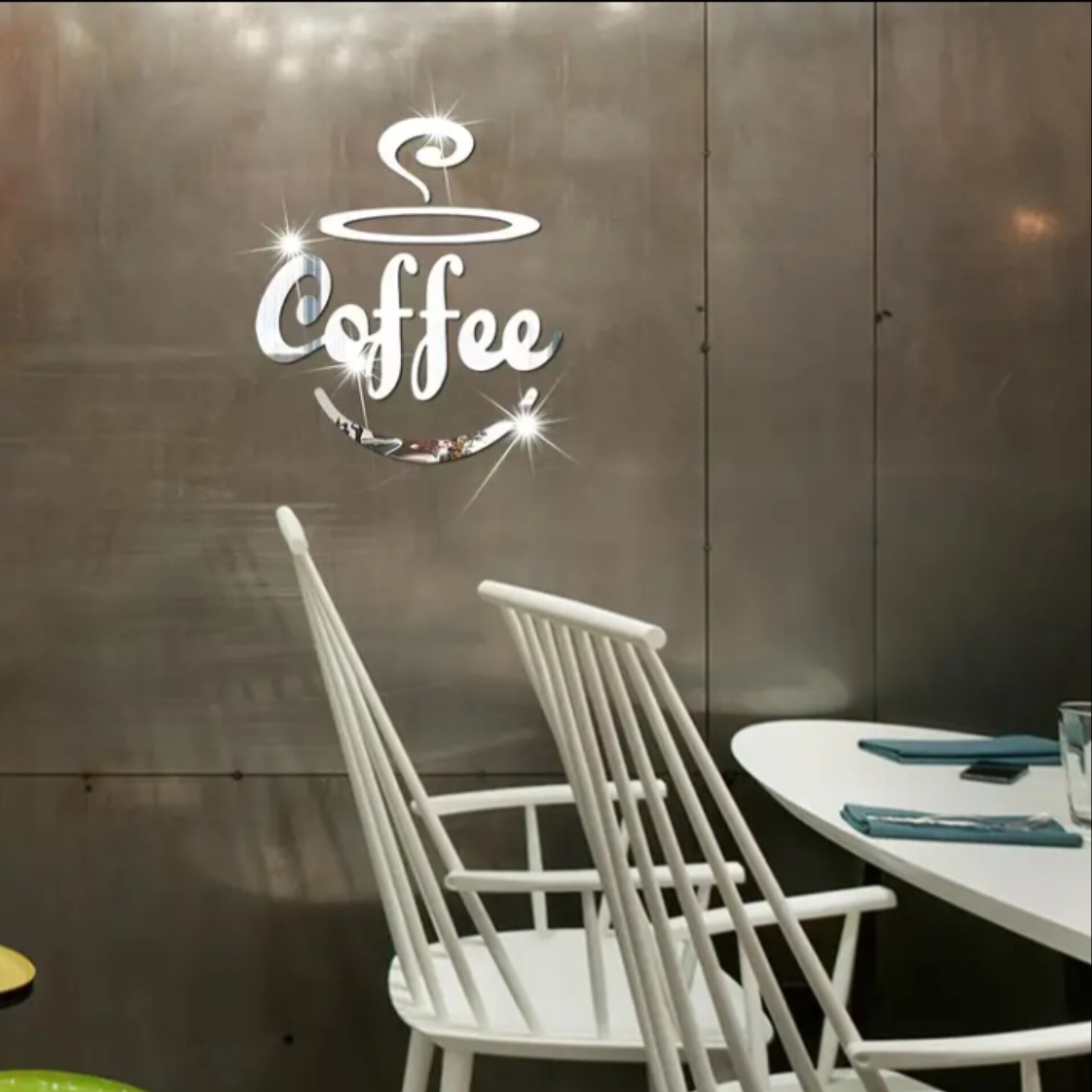 آینه ی دیواری طرح کافه در ابعاد30در 40 درسانتیمتر جنس مولتی استایل ضخامت یک میل پشت چسبدار موجود در دو رنگ طلایی و نقره ی 🔴لطفا بعد از نصب روکش سلفونی محصول رو جدا کنید🔴