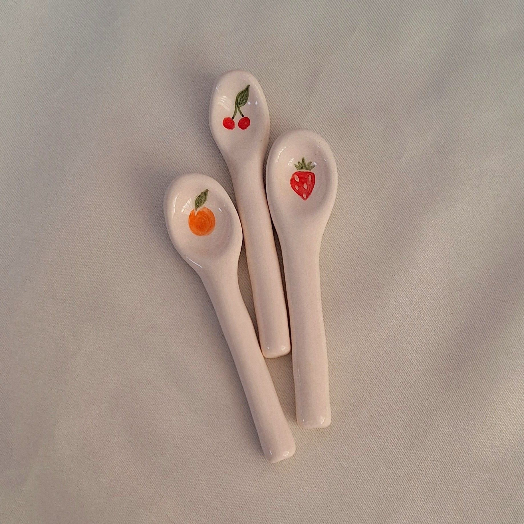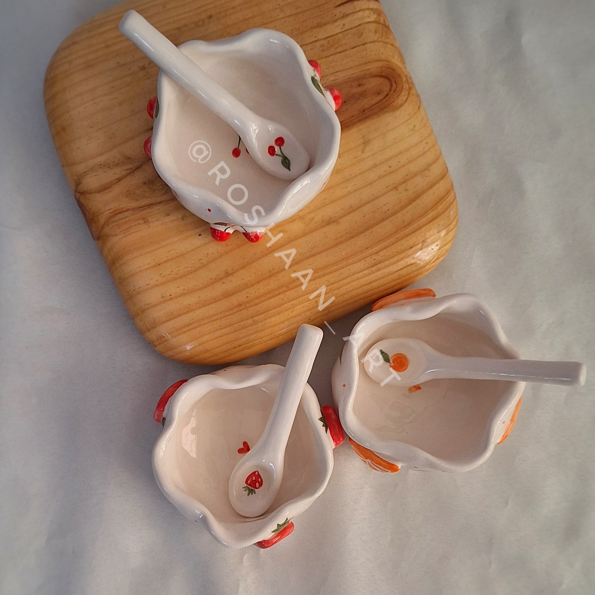 کاسه مربا مرباخوری بستنی خوری کاسه دستساز قاشق سرامیکی کاسه سرامیکی پرتقالی توت فرنگی مبلمونسرا مدل 272011