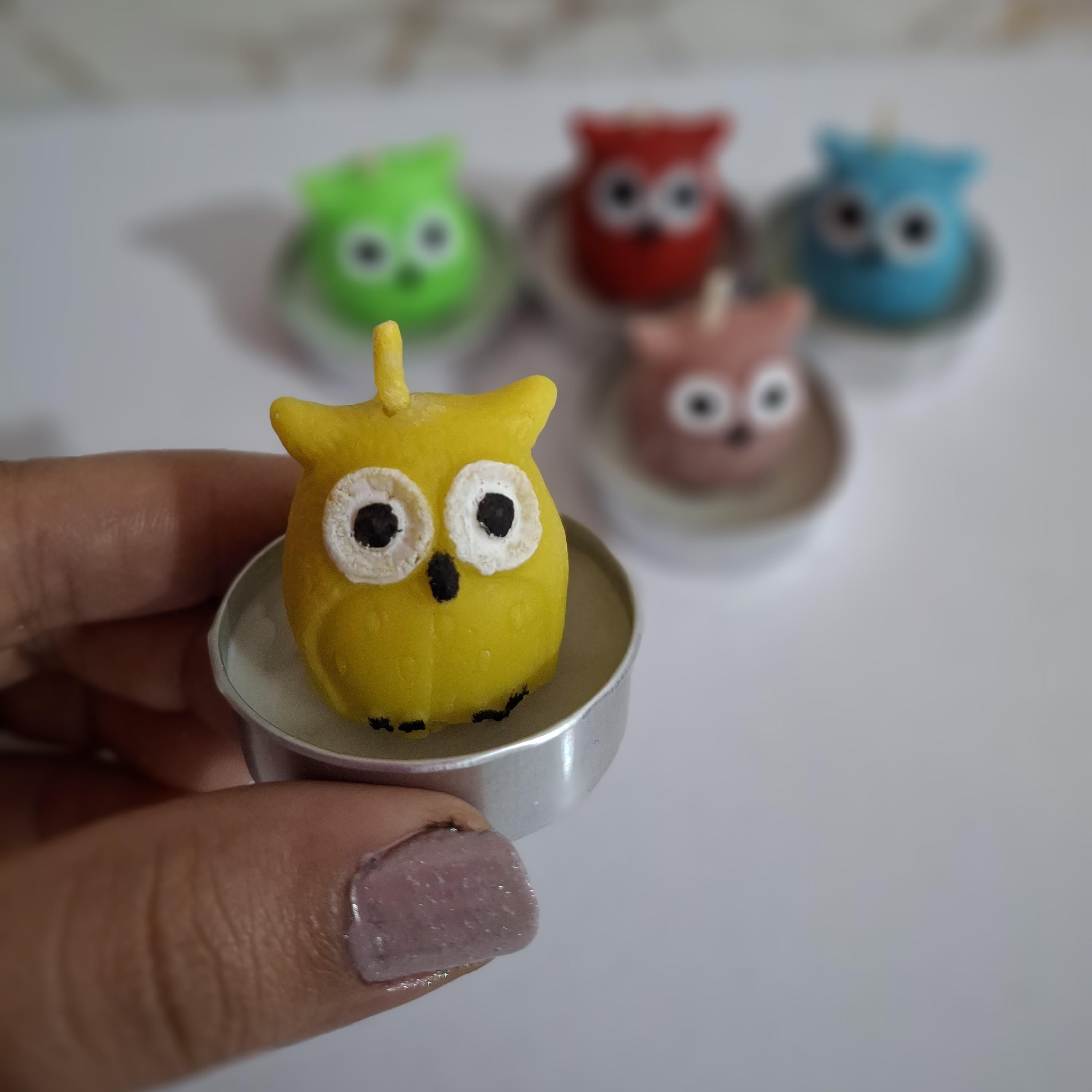 شمع وارمر جغدی خیلی قشنگ و کیوته هرچی از زیبایی و بامزگیش بگم کم گفتم. در رنگ بندی متنوع از جمله زرد، سبز، ابی، قرمز، صورتی، مشکی و ... شمع وارمر جغدی مناسب تولد، دورهمی، جشن تکلیف، جشن تعیین جنسیت، و ... سفارش تعداد بالا هم پذیرفته می شود. 09366758707 خانم موسوی