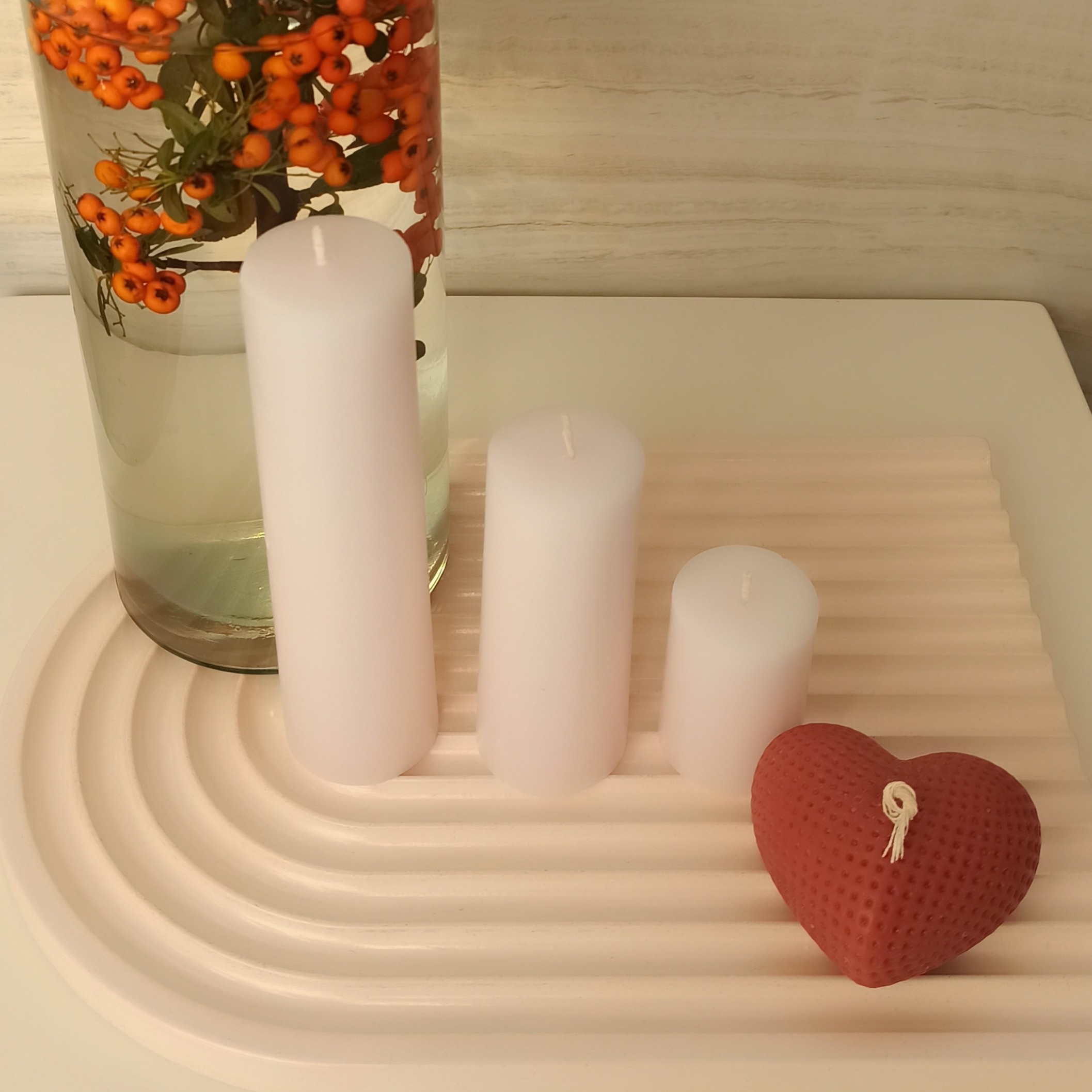 شمع استوانه ای در سه سایز 5و 10و 15 سانتی با قطر 4 قابل اجرا در رنگ دلخواه شما عزیزان 🌺 بصورت معطر هم بنا به درخواست عزیزان تهیه میشود 💙 بصورت ست کامل هم قابل سفارش است 🥰 به همراه قلب حصیری و استند رنگین کمان بزرگ