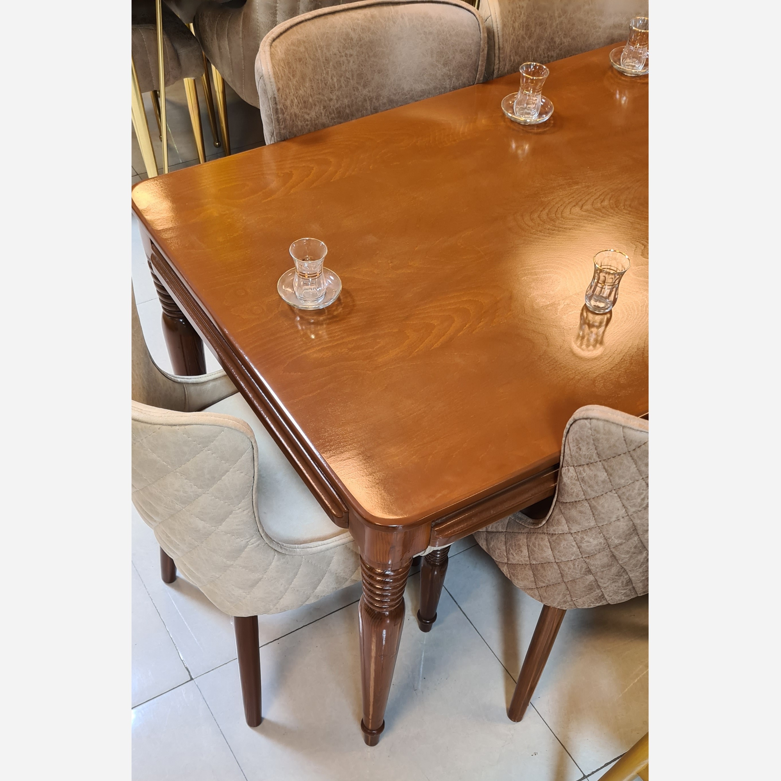 میز و صندلی ناهارخوری 6نفره مدل حلزونی 🟣یه کاره شیک ، ساده ، به همراه صندلی هایی بسیار راحت 🟢جنس صفحه : MDF روکش راش 🟢جنس پایه میز : چوبه توسکا 🟢پایه های میز پیچ و مهره ای است و قابلیت بازو بسته شدن دارد 🟢 پایه میز و پایه جلوی صندلی باهم سته است 🟢ابعاد صفحه میز: 160×90 سانتیمتر 🔴کلاف صندلی : چوبه توسکا 🔴 اسنفج استفاده شده : 20 کیلویی ویژه 🔴پارچه صندلی : به دلخواه مشتری هم جنس هم رنگ پارچه قابل تغییره 🟣برای تغییره رنگه چوب و پارچه 10 الی 14 روز کاری زمان لازمه 🟣هزینه و باربری و اسنپ به عهده مشتری عزیز میباشد🌹❤️ رضایت شما هدف ماست ✅️