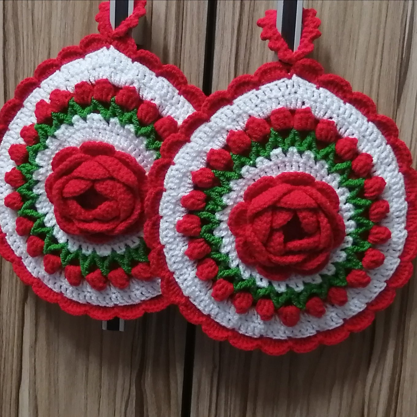 این دستگیره بافته شده با کامواهای آکریل تاپ ایرانی با کیفیت بالا و قیمت مناسب و بدون پرز دهی، مناسب آشپزخانه و جهیزیه عروس خانمهای خوش سلیقه قطر این دستگیره : 17 سانت