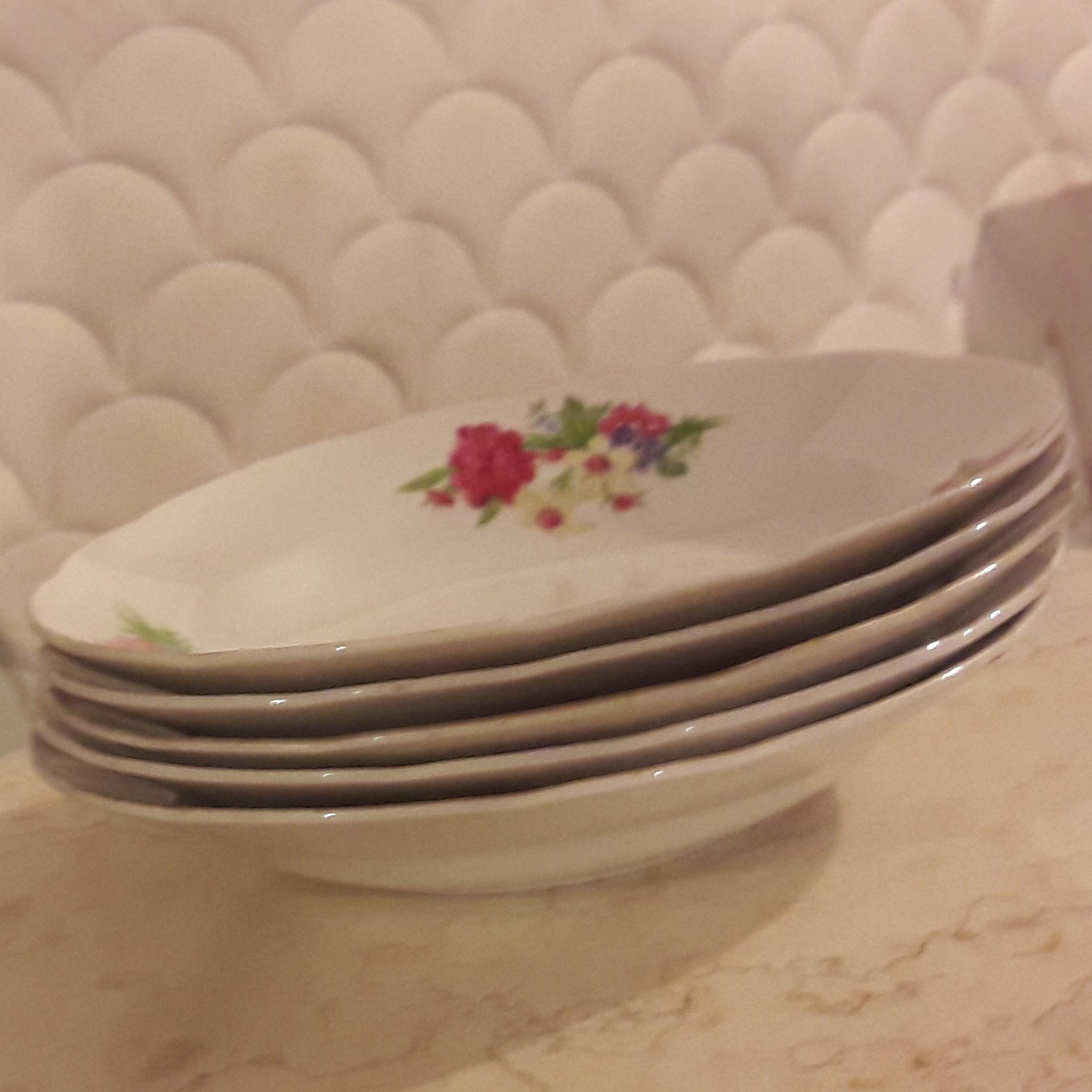 بشقاب چینی سوپخوری قدیمی بسیار زیبا 5 عددی با ارسال رایگان