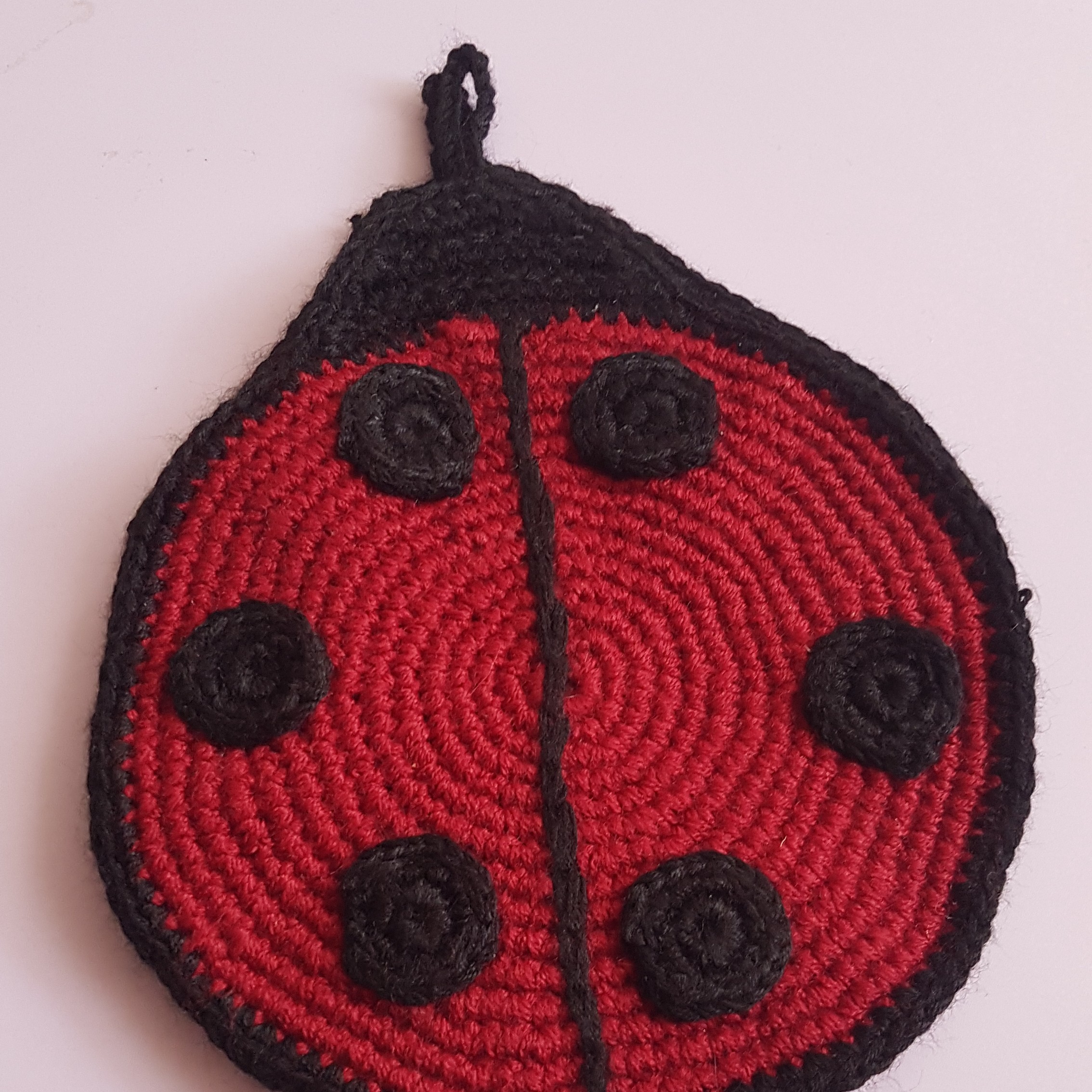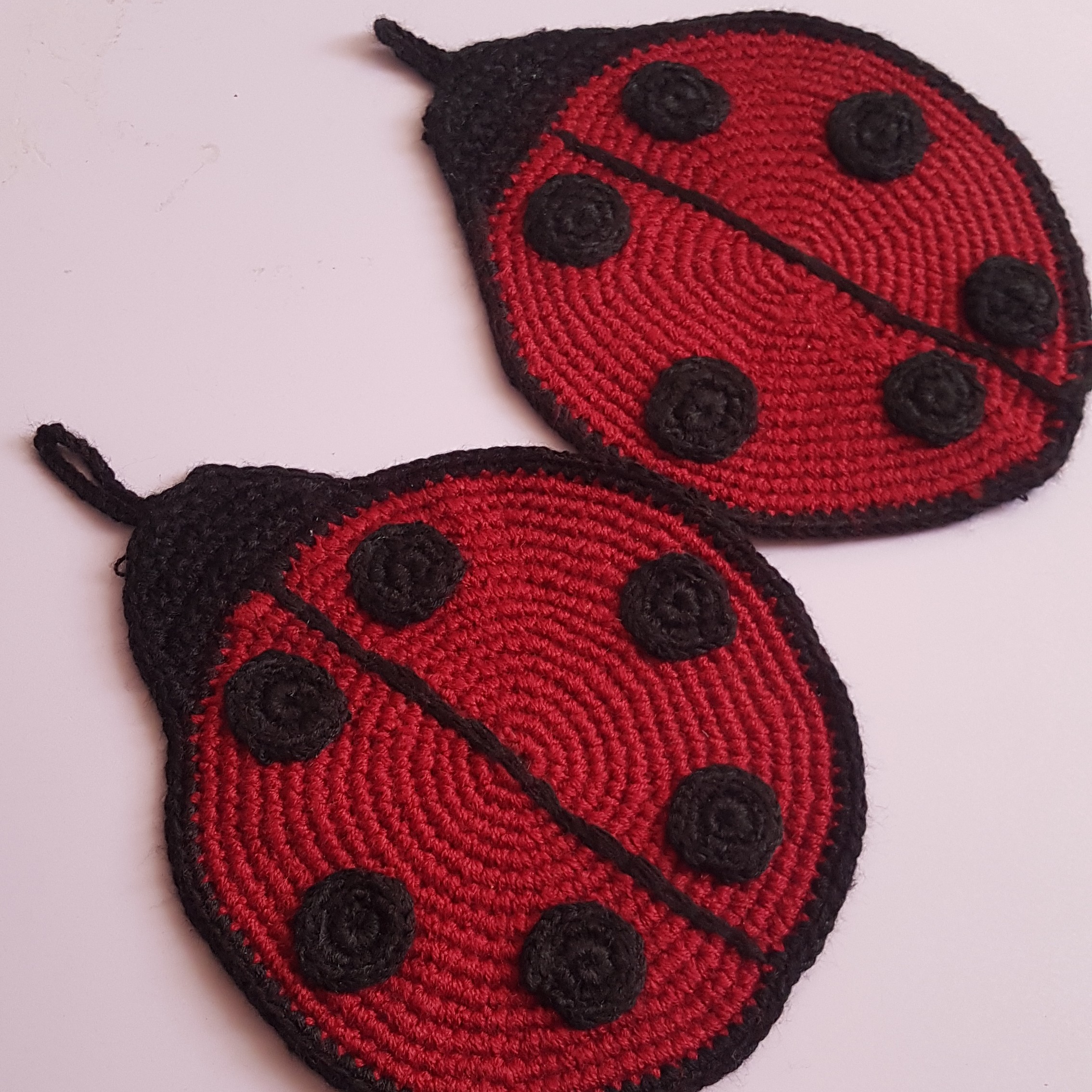 یک جفت دستگیره قلاب بافی کاملا دست بافت در طرح کفشدوزک