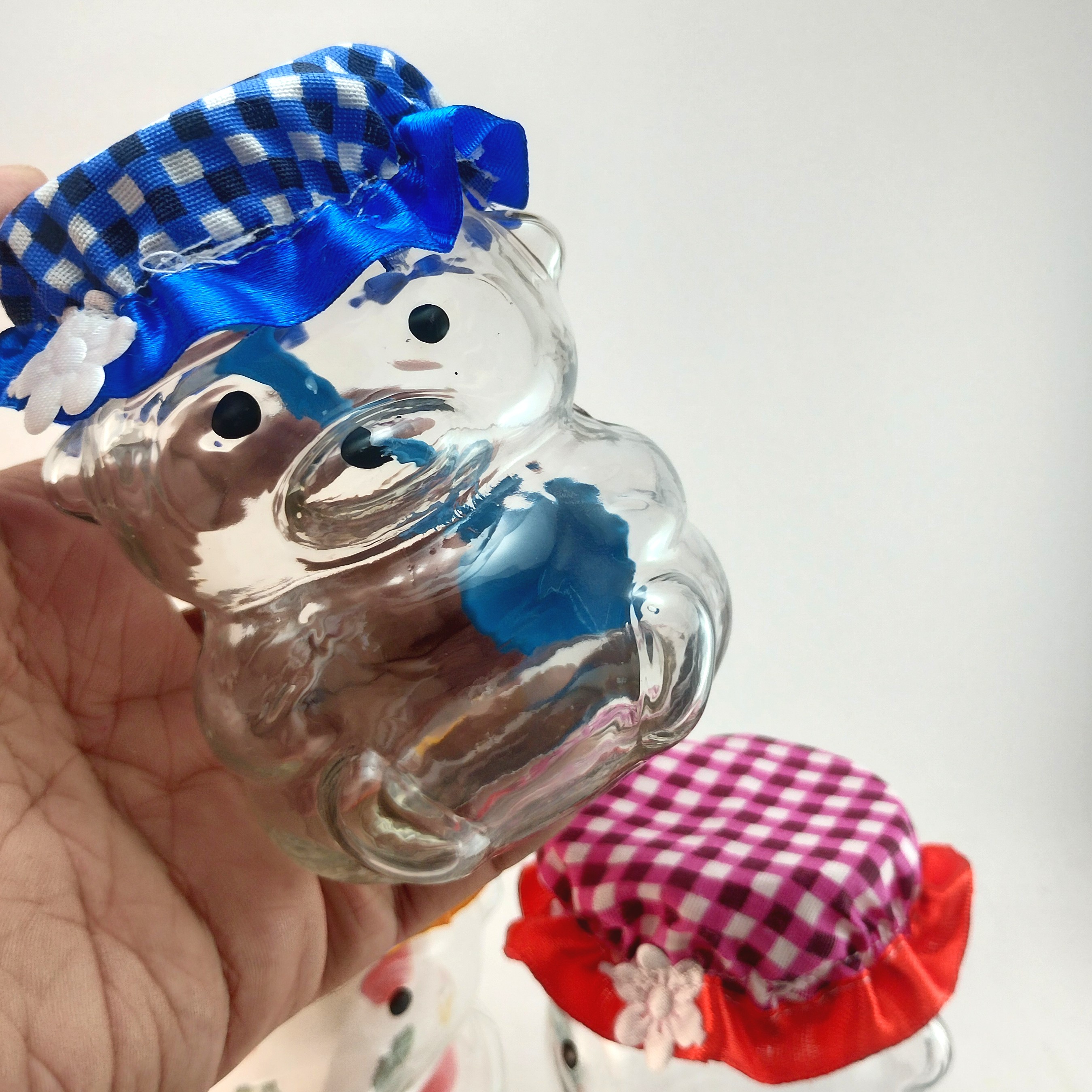 بانکه شیشه ای و شکر پاش با طرح خرسی کلاه دار، دارای بدنه ای شیشه ای می باشد، که به دلیل داشتن جنس شیشه مرغوب در برابر تغییرات دما مقاومت بالایی دارد. بانکه شیشه ای خرسی دارای درب پلاستیکی با کلاه پارچه ای می باشد که از ورود غبار و آلودگی ها به داخل محفظه جلوگیری می کند. از بانکه شیشه ای خرسی برای نگهداری انواع ادویه جات و نمک و... استفاده می شود. بانکه حبوبات علاوه برنگهداری انواع ادویه به آشپزخانه نیز نظم و زیبایی می بخشد. بانکه شیشه ای دارای قطر دهانه 5.5 و ارتفاع 10 سانتیمتر می باشد. این بانکه از جمله بانکه های فانتزی می باشند که علاوه براینکه نگهدارنده عالی برای ادویه جات و نمک و ... می باشد باعث زیبایی آشپزخانه نیز می شوند. این بانکه را می توانید در مشاهده کنید. از جمله برندهای ایرانی که به تولید انواع جا حبوباتی و جا ادویه ای و بانکه حبوبات شیک می پردازد می توان به کیمیا کاوان پرشین اشاره کرد. این محصول، جا ادویه ای شیک است که دارای کیفیت خوب و قیمت متناسبی باشد. بانکه شیشه ای درب پلاستیکی ساخت ایران می باشد که از لحاظ کیفیت با محصولات مشابه خارجی خود برابری می کند و هم چنین دارای قیمت خیلی مناسبتری نسبت به محصولات خارجی می باشد. این محصول از جمله محصولات کارخانه جات شهدای اصفهان می باشد که دارای جنسی مرغوب و قیمتی مناسب می باشد.