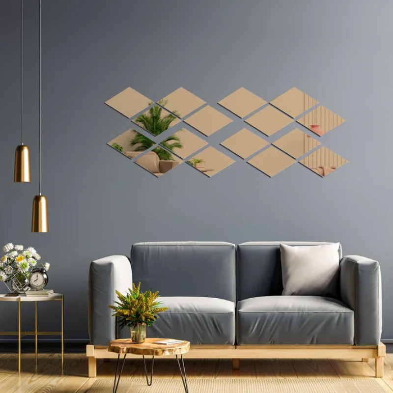 آینه پلکسی گلس مدل لوزی دکوراتیو کد N3-2 مجموعه 20 عددی مبلمونسرا مدل 261657