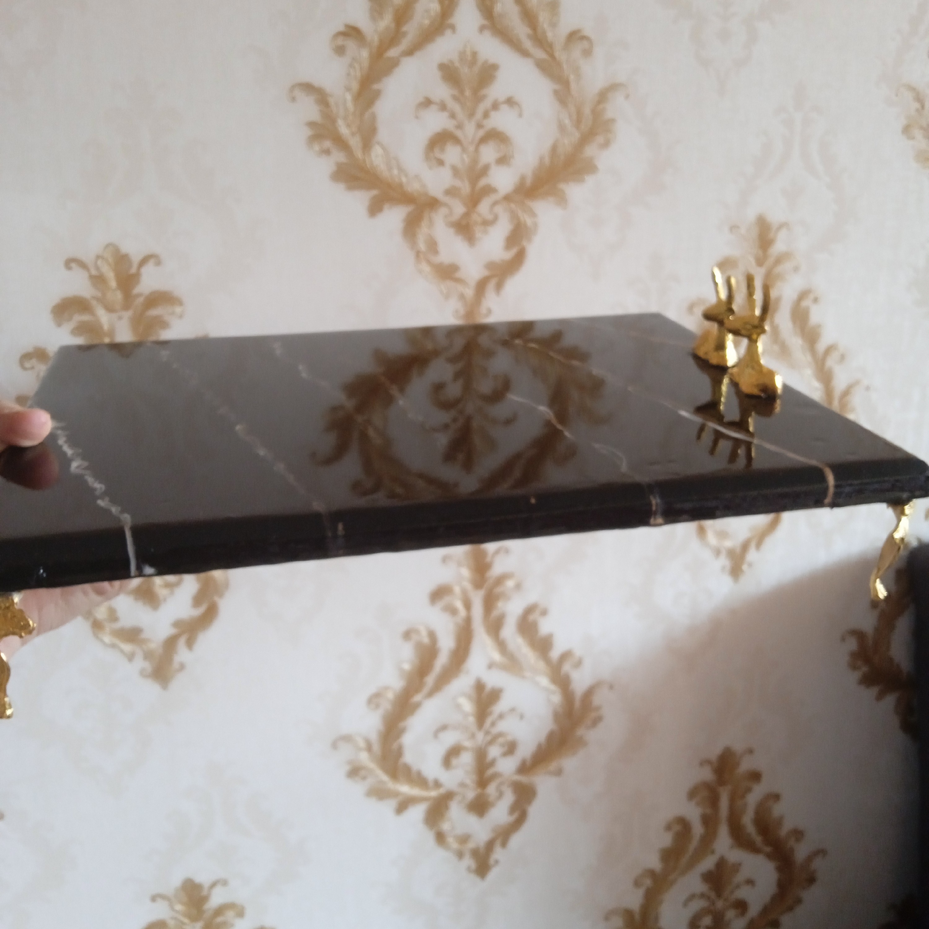 استند مرمر مشکی مناسب برای پذیرایی یا به عنوان رایزر برای نظم دهی به بانکه ها قابل استفاده است ابعاد کار 30در 40 بیس اصلی چوب 16میل که با رزین پوشیده شده
