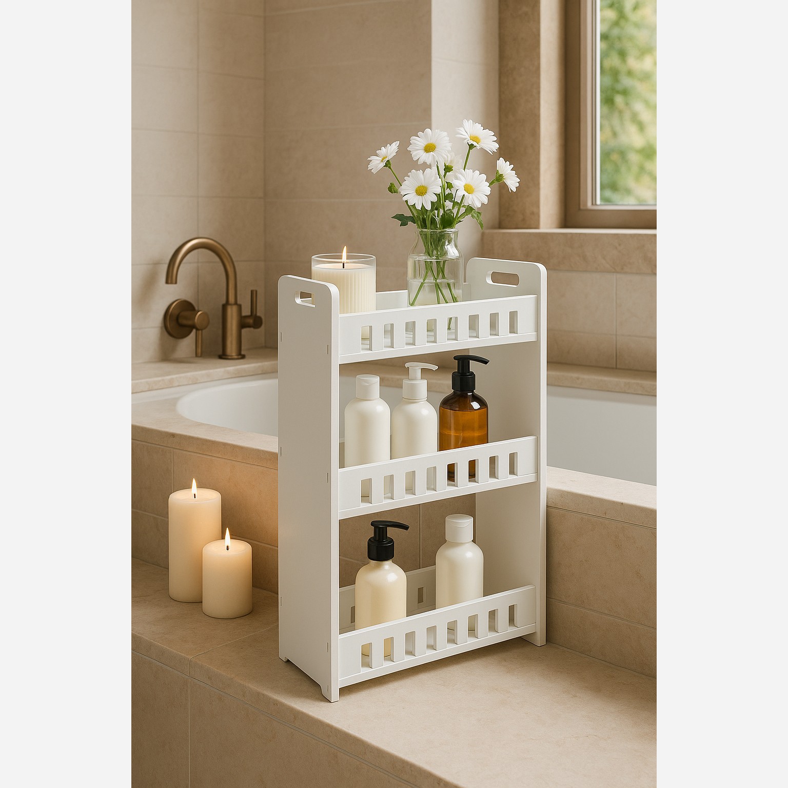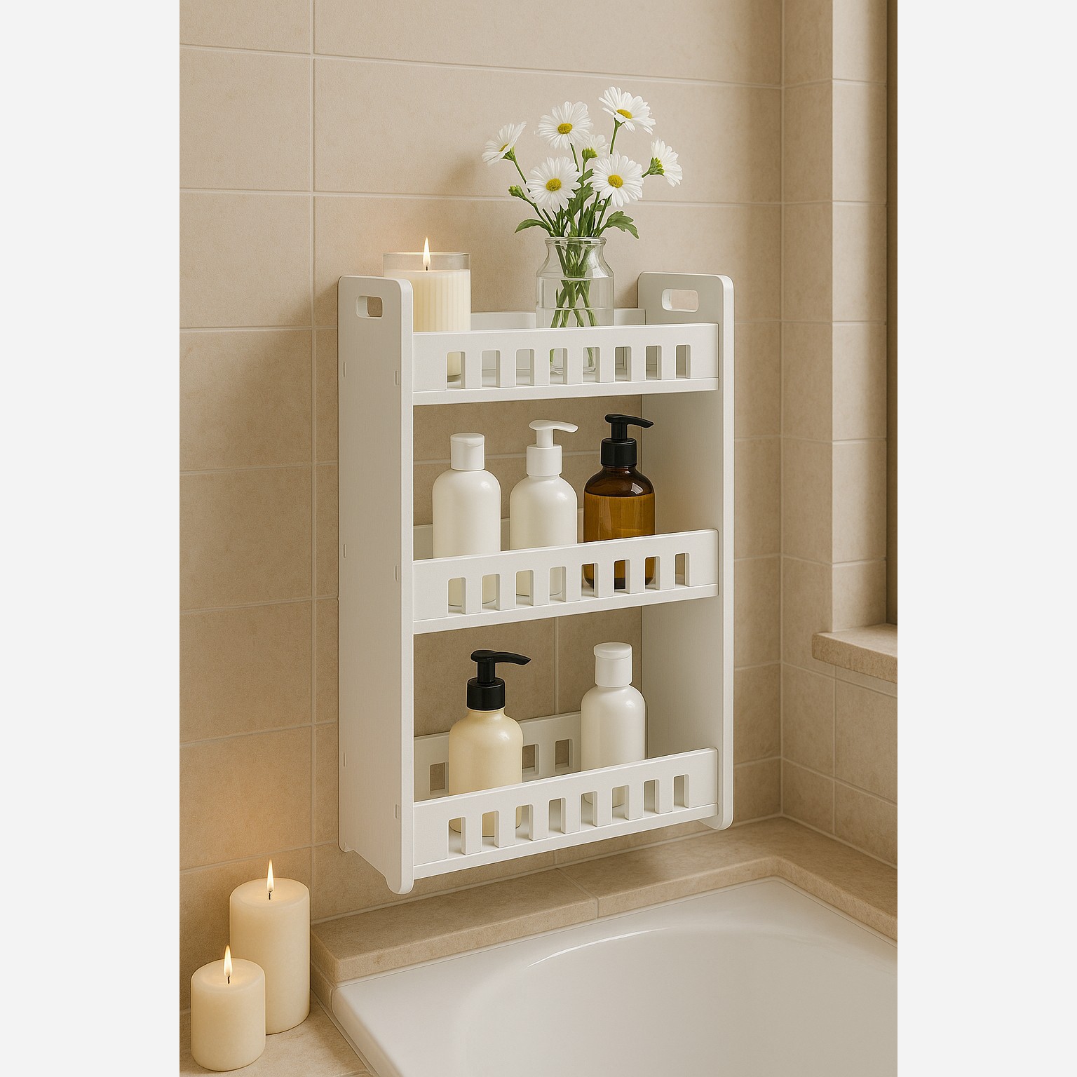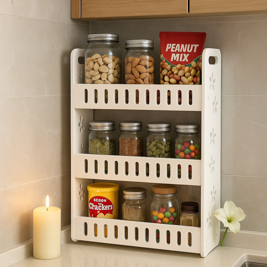 شلف حمام و آشپزخانه دیواری و رومیزی بزرگ با کفی شیار دار شلف نظم دهی وسایل آشپزخانه و حمام شلف کنار یخچال قابل شستشو مبلمونسرا مدل 258407