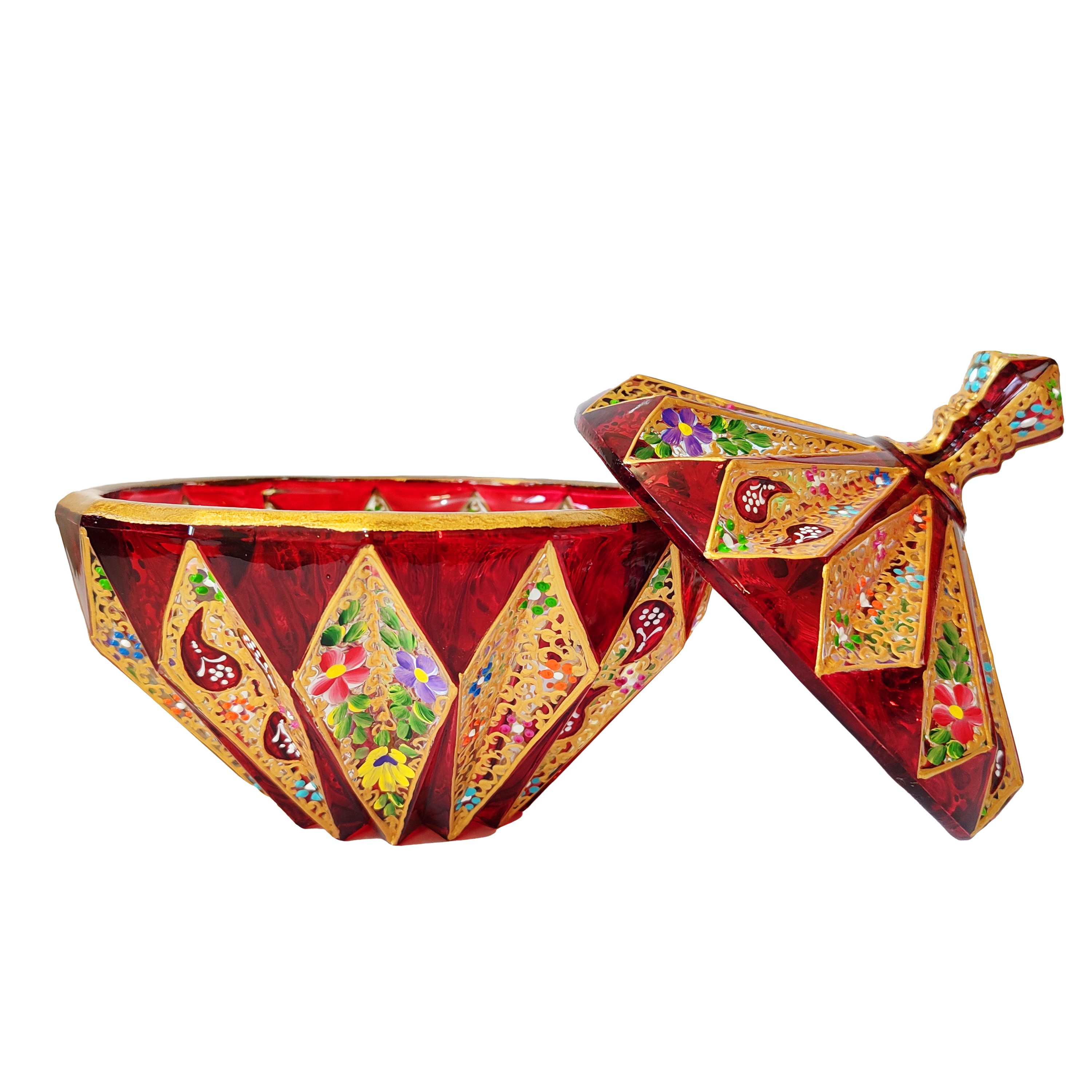 شکلات خوری بلور نقاشی گل و ترمه قرمز مبلمونسرا مدل 296801