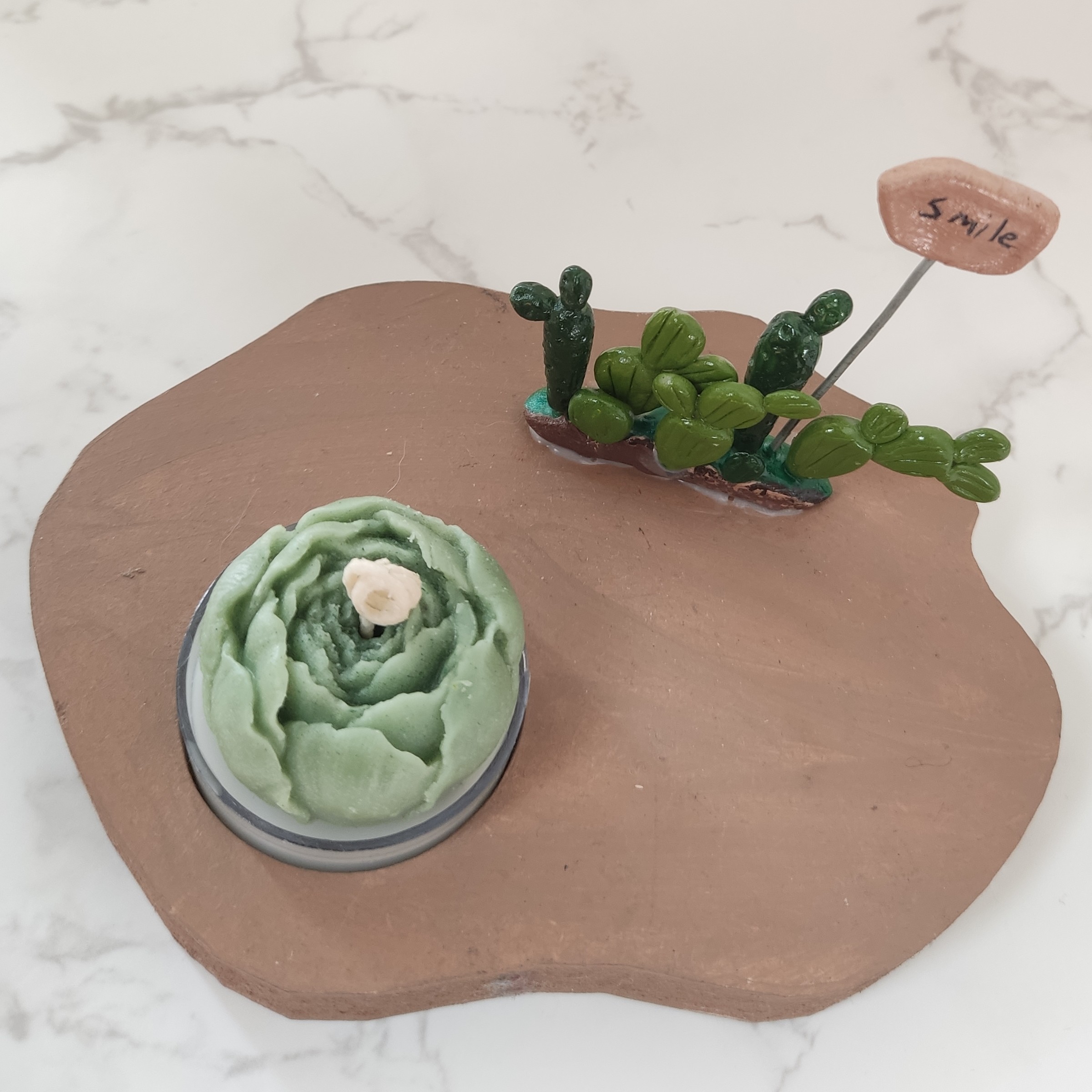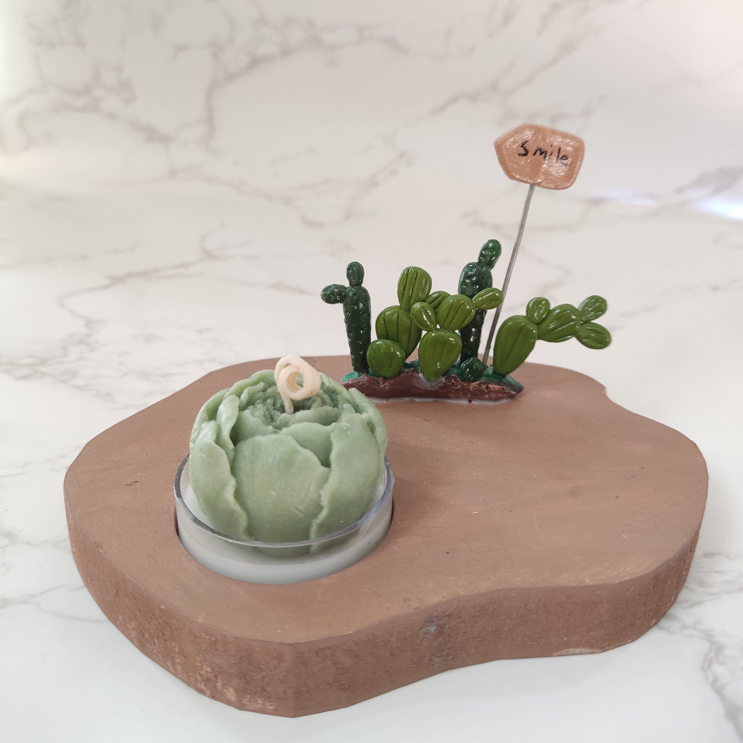 جا وارمری کاکتوس همراه شمع ،کاکتوس ها و شمع کار دست هست