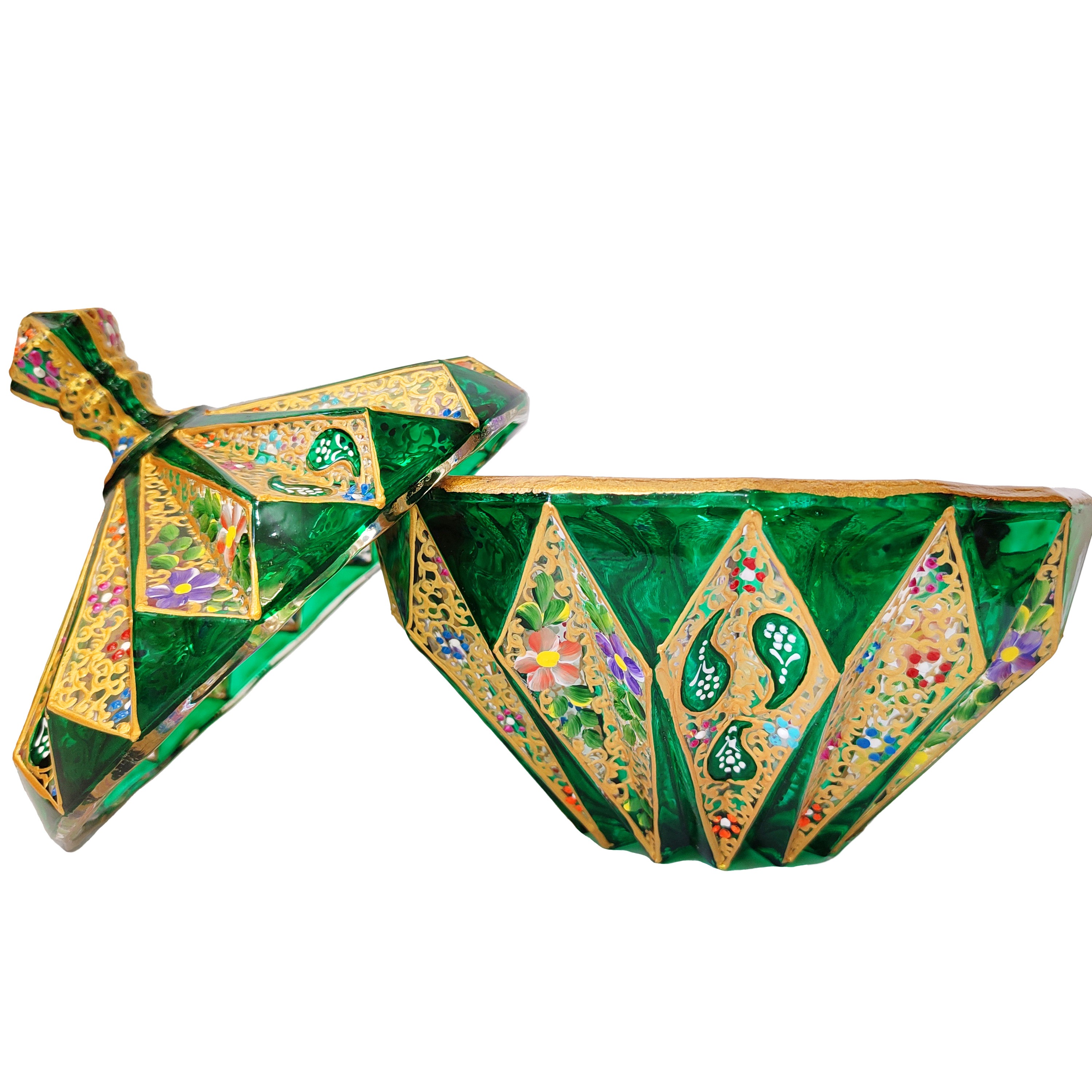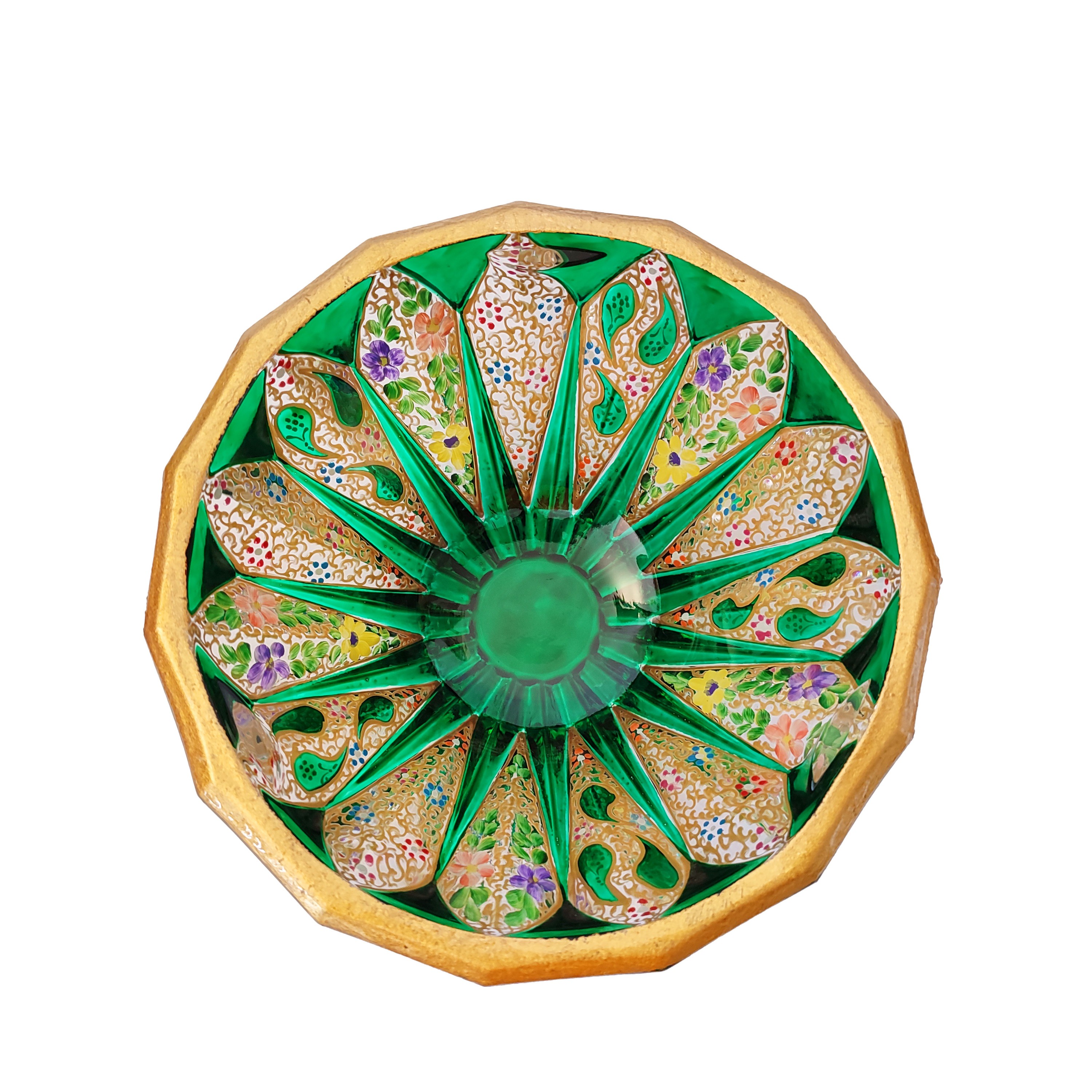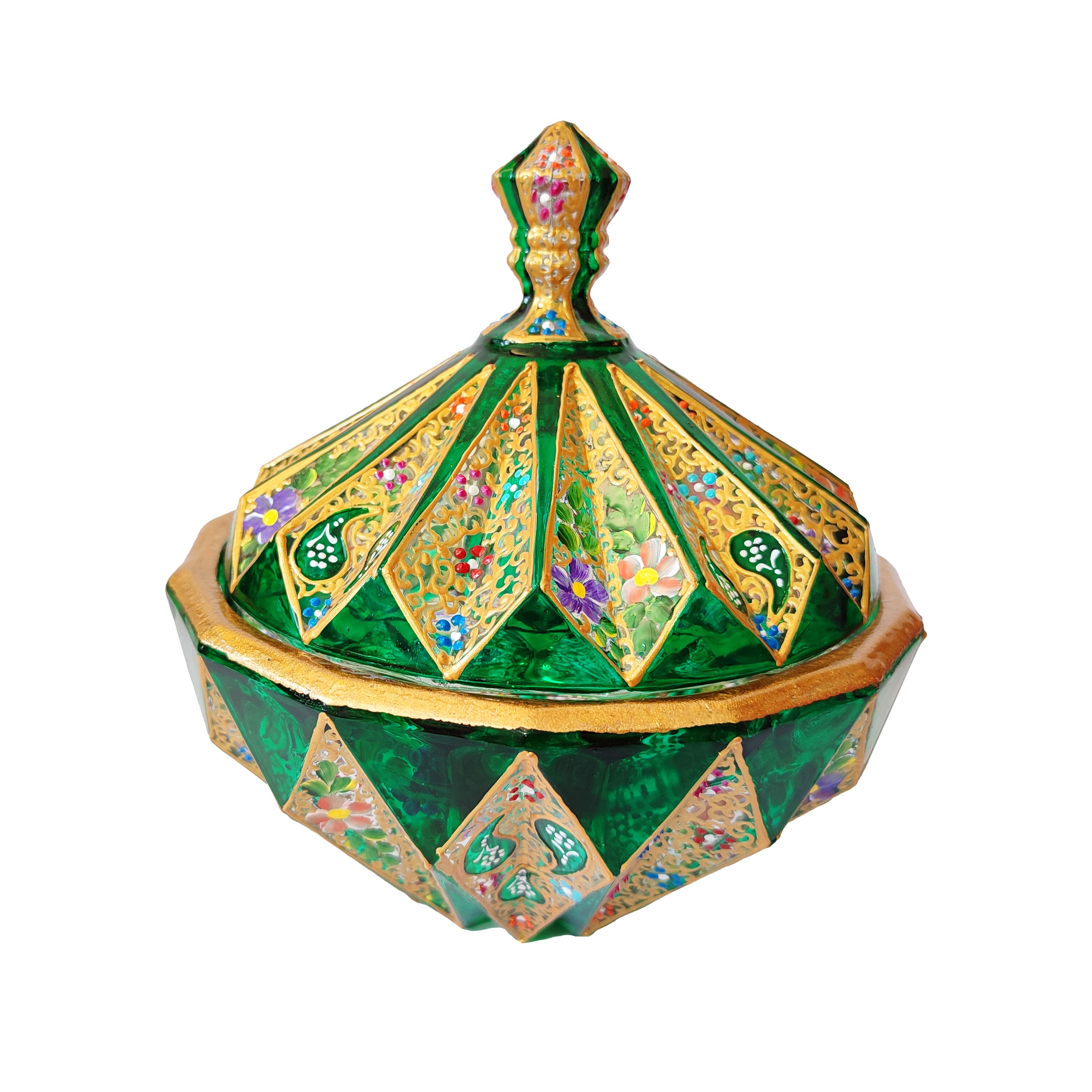 شکلات خوری بلور نقاشی گل و ترمه سبز مبلمونسرا مدل 296798