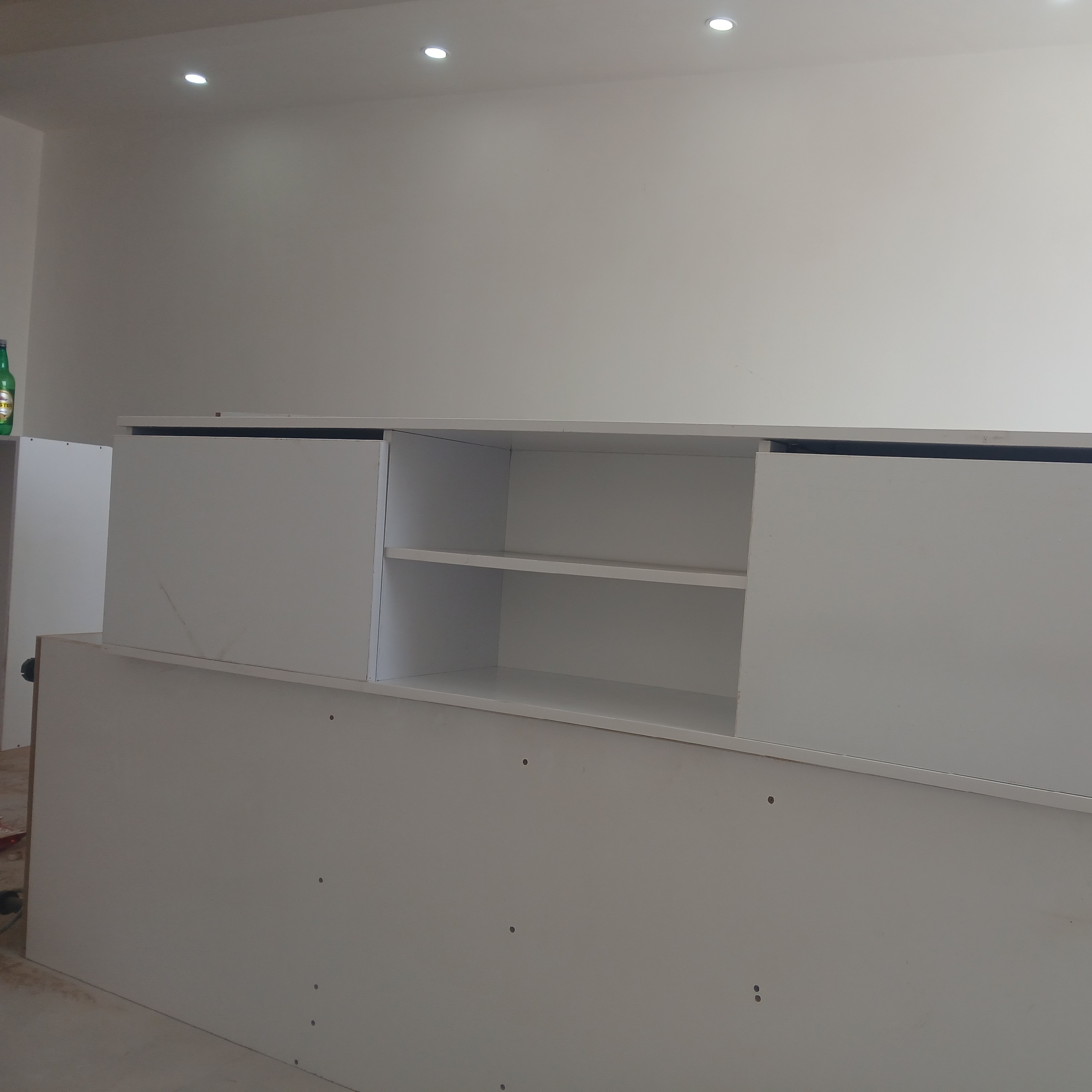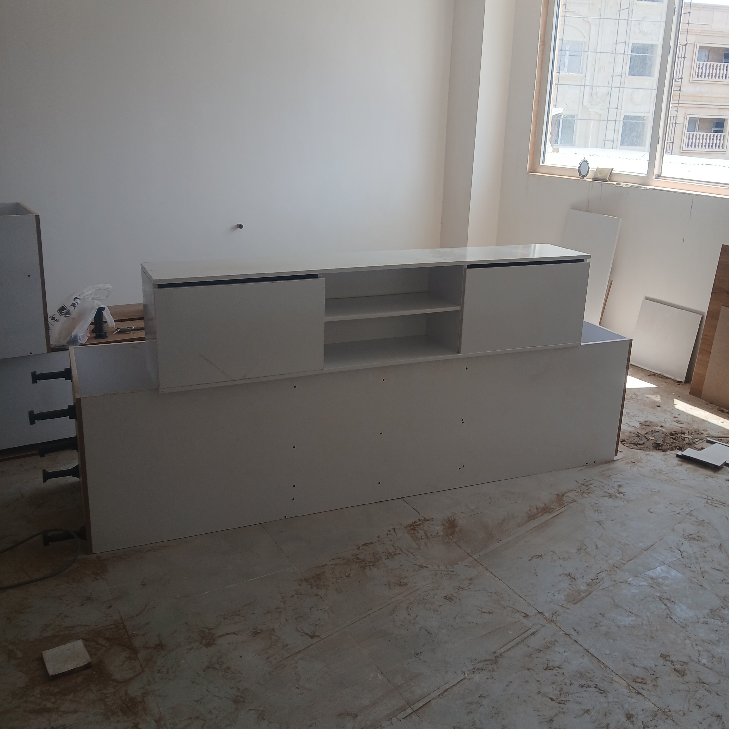 میز تلویزیون سفید رنگ و اندازه ها متغیر رنگ دربها دلخواه کلیه ارسال ها ابعاد 180 در 30 در 35