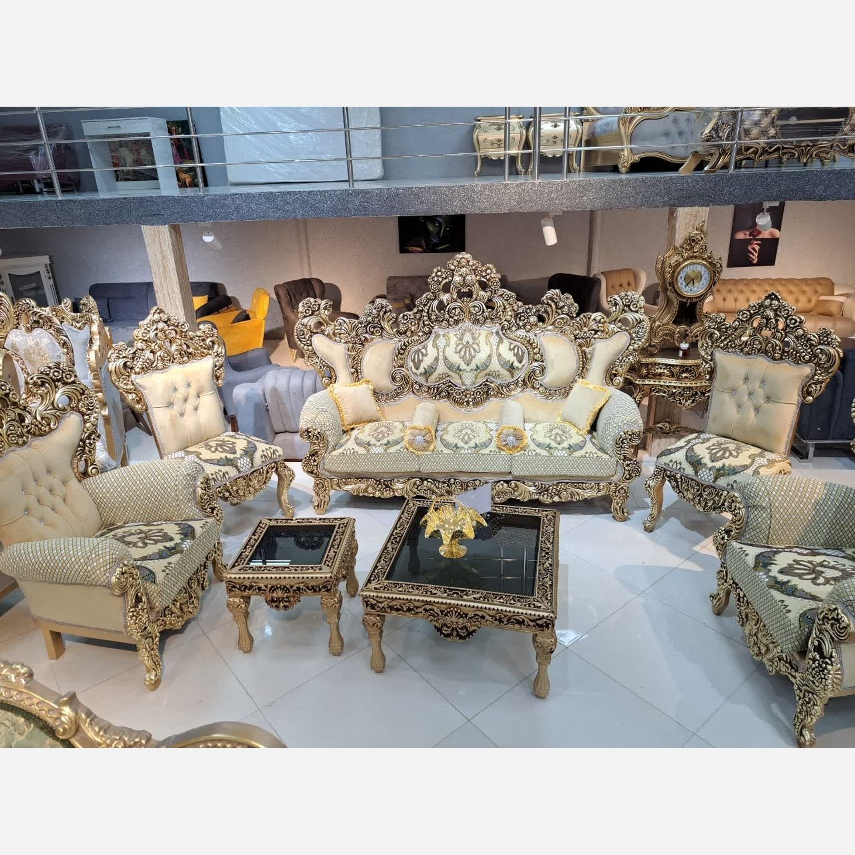 #یاقوت ترکیبی _ زیبا و طرح منحصربفرد ست 9 نفره: 1 عدد کاناپه 3 نفره 4 عدد مبل تک نفره 2 عدد صندلی میزبان ♦️جلو مبلی و 2 عدد عسلی:هدیه شرکت رنگبندی چوب و پارچه به سلیقه مشتری ارسال از طریق باربری به سراسر کشور