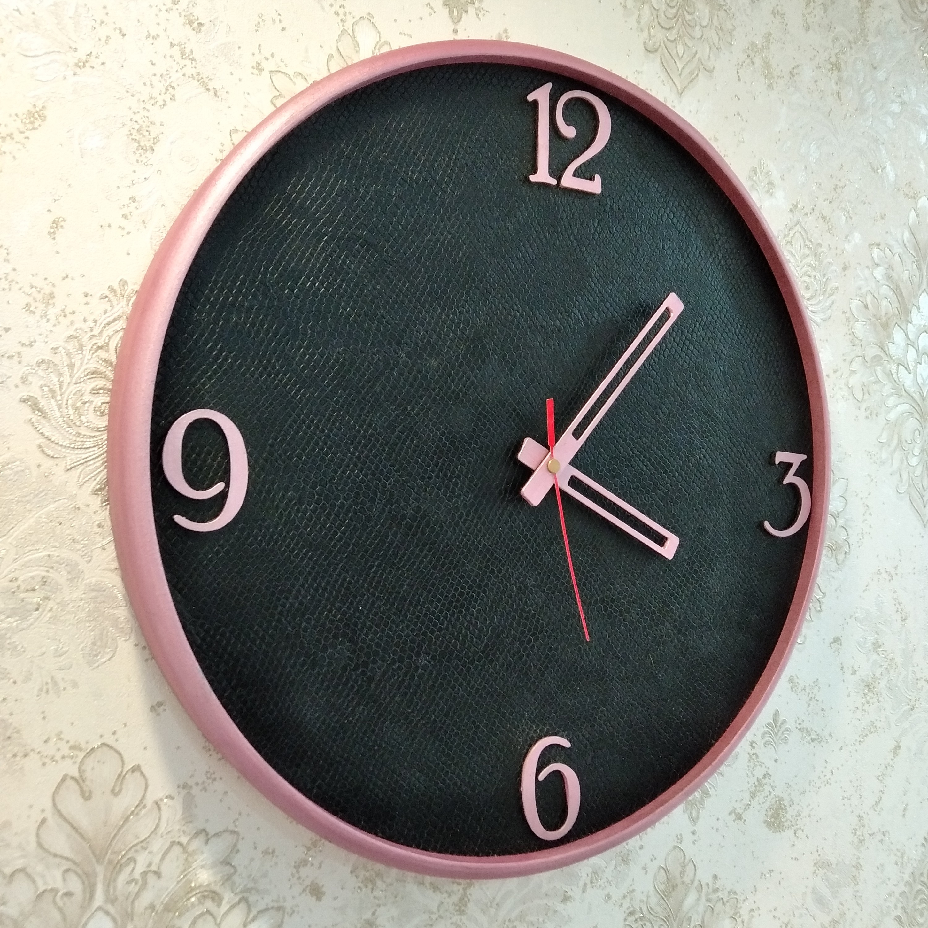 ساعت دیواری طرح چرم ساعت تبلیغاتی ساعت صورتی ساعت چرمی مبلمونسرا مدل 240461