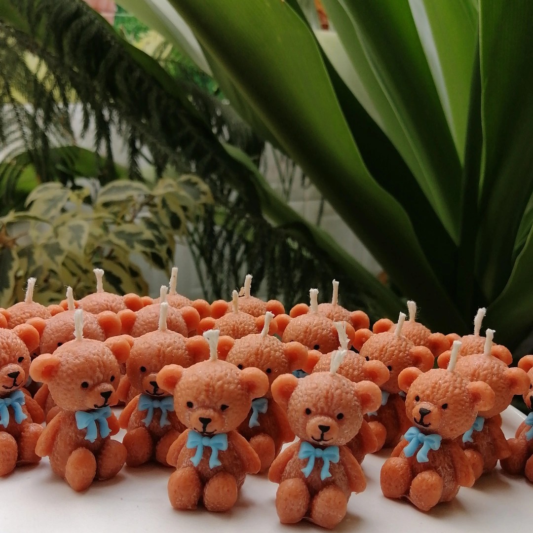شمع تدی 4سانتی پاپیون دار قابل سفارش در رنگ های دلخواه شما تنوع پاپیون بالا هست