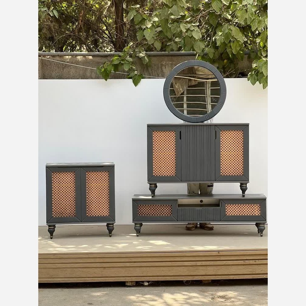 ست میز و آینه کنسول حصیری مبلمونسرا مدل 219869