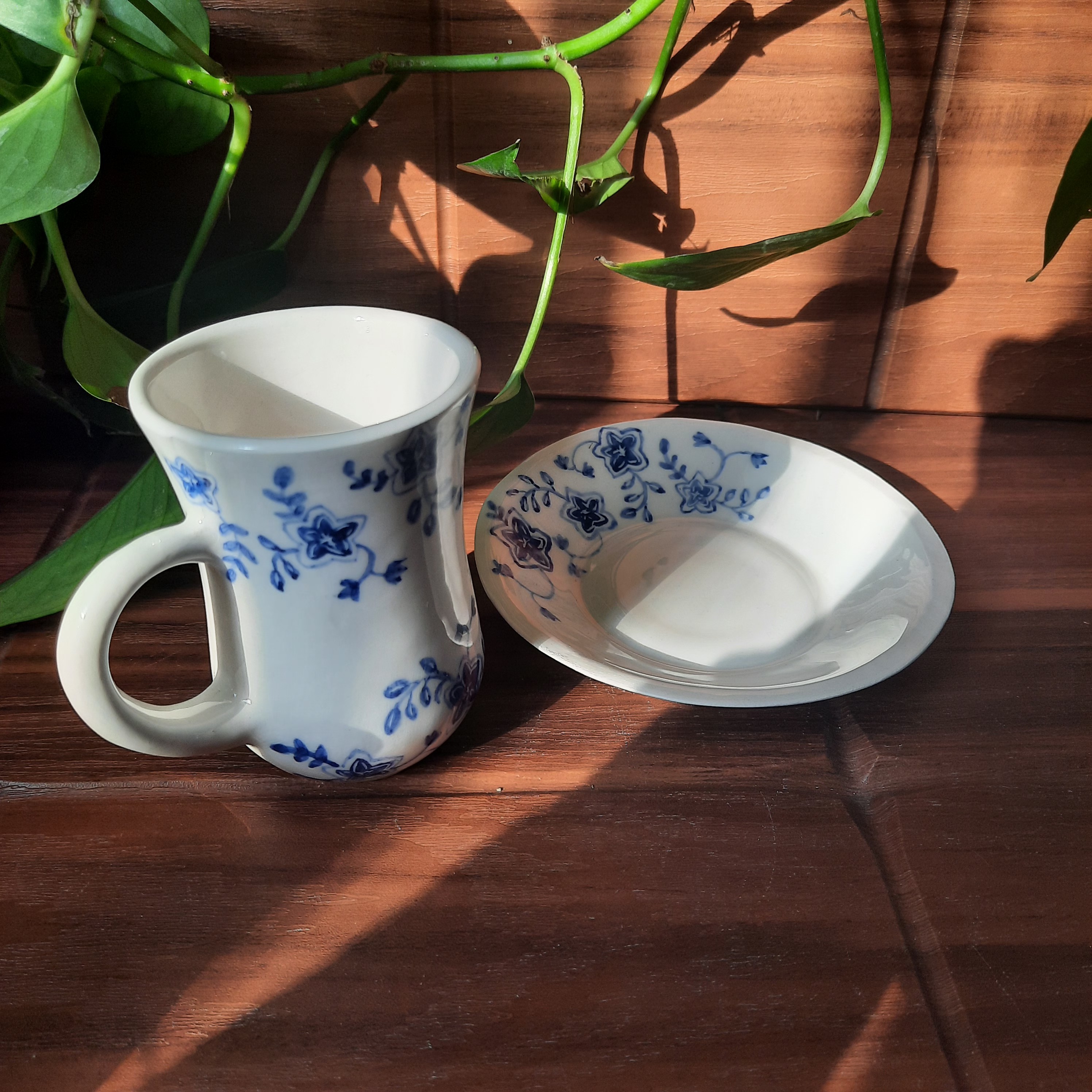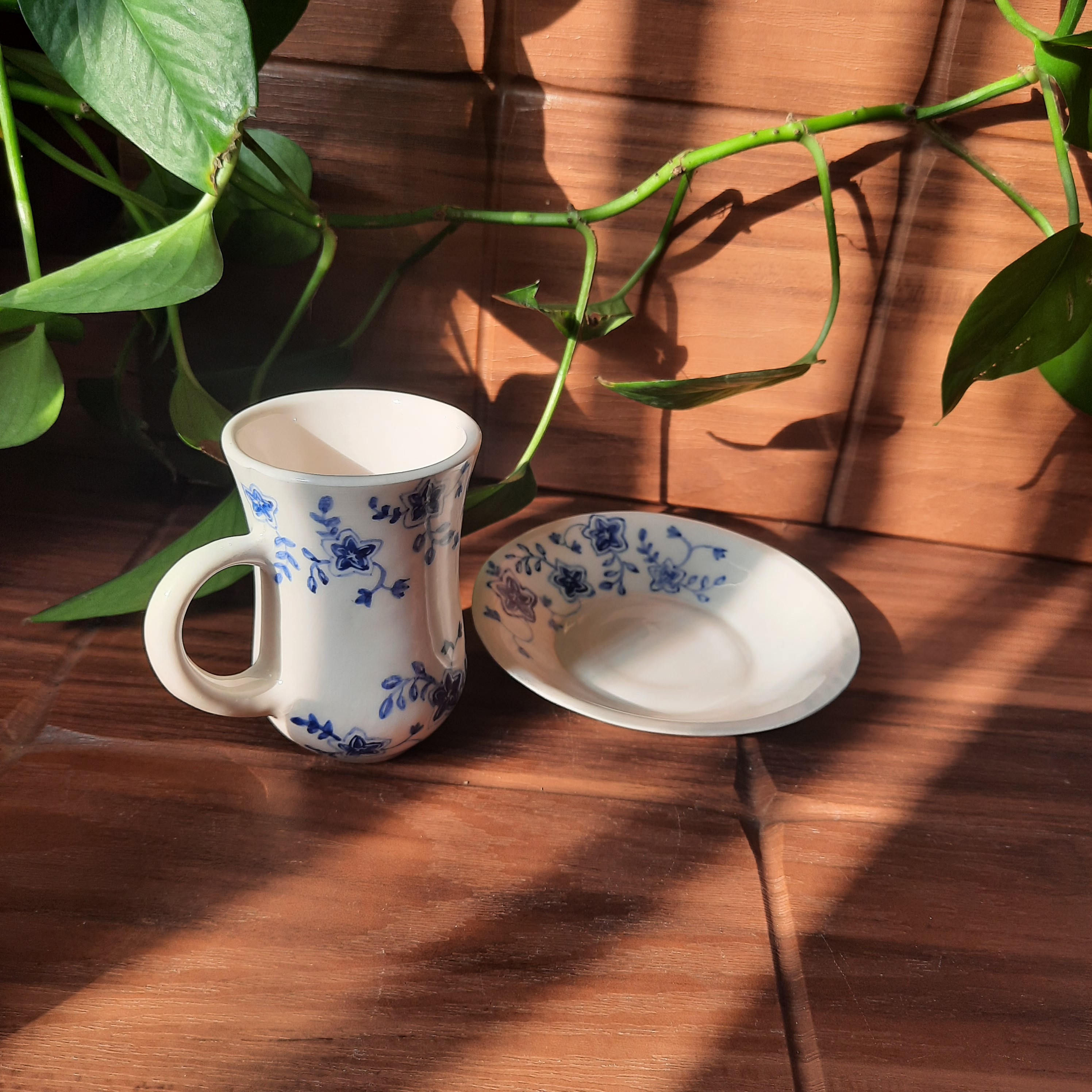 فنجان و نعلبکی سرامیکی طرح گل آبی مبلمونسرا مدل 277607