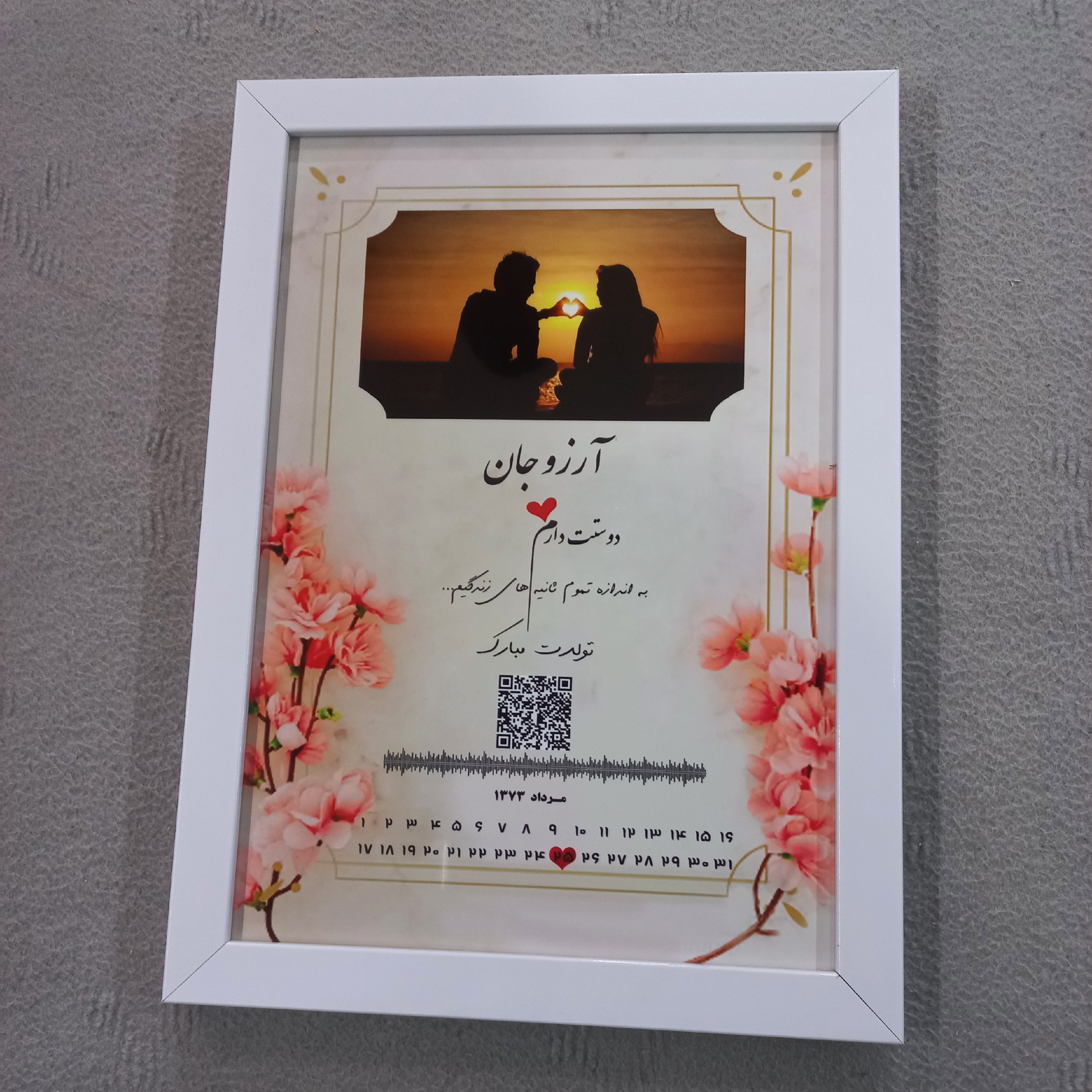 تابلو موزیکال با چاپ دلخواه با قاب و کیوآرکد ابعاد آ5 مبلمونسرا مدل 266900