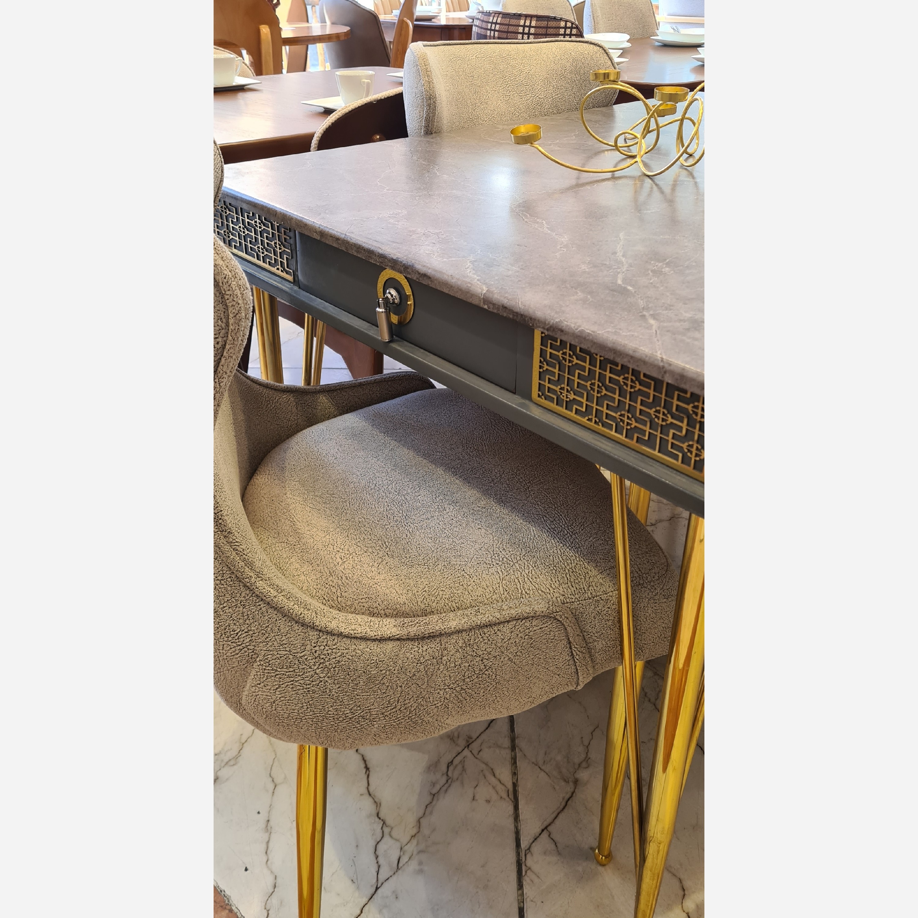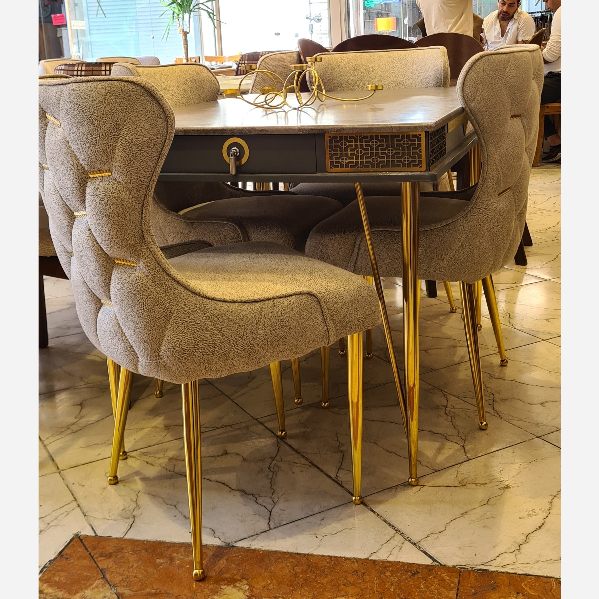 میز و صندلی ناهارخوری 4نفره مدل زنبوری 🟢صفحه میز: وکیوم 🟢پایه میز : فلزهای آبکاری شده درجه یک 🟢پایه میز و صفحه میز پیچ و مهره است و قابلیت بازو بسته شدن دارد 🟢 طرح و رنگه صفحه میز قابل تغییره 🟢ابعاد صفحه میز : 120×80 سانتیمتر 🟢این میز دارای دو کشو است 🔴کلاف صندلی چوبه روس و پایه صندلی فلز آبکاری شده است 🔴پارچه صندلی: به دلخواه مشتری قابل تغییره 🟢اسفنج کف:35 کیلویی رنگ بندی فلزهای ناهارخوری: هم طلایی و هم نقره ای قابل سفارشه 🔴پشت صندلی دارای لونه زنبوری است که به دلخواه مشتری قابل تغییره 🔴برای تغییره رنگه چوب و پارچه 10 الی 14 روز کاری زمان لازمه 🟢هزینه و باربری و اسنپ به عهده مشتری عزیز میباشد🌹❤️ رضایت شما هدف ماست ✅️