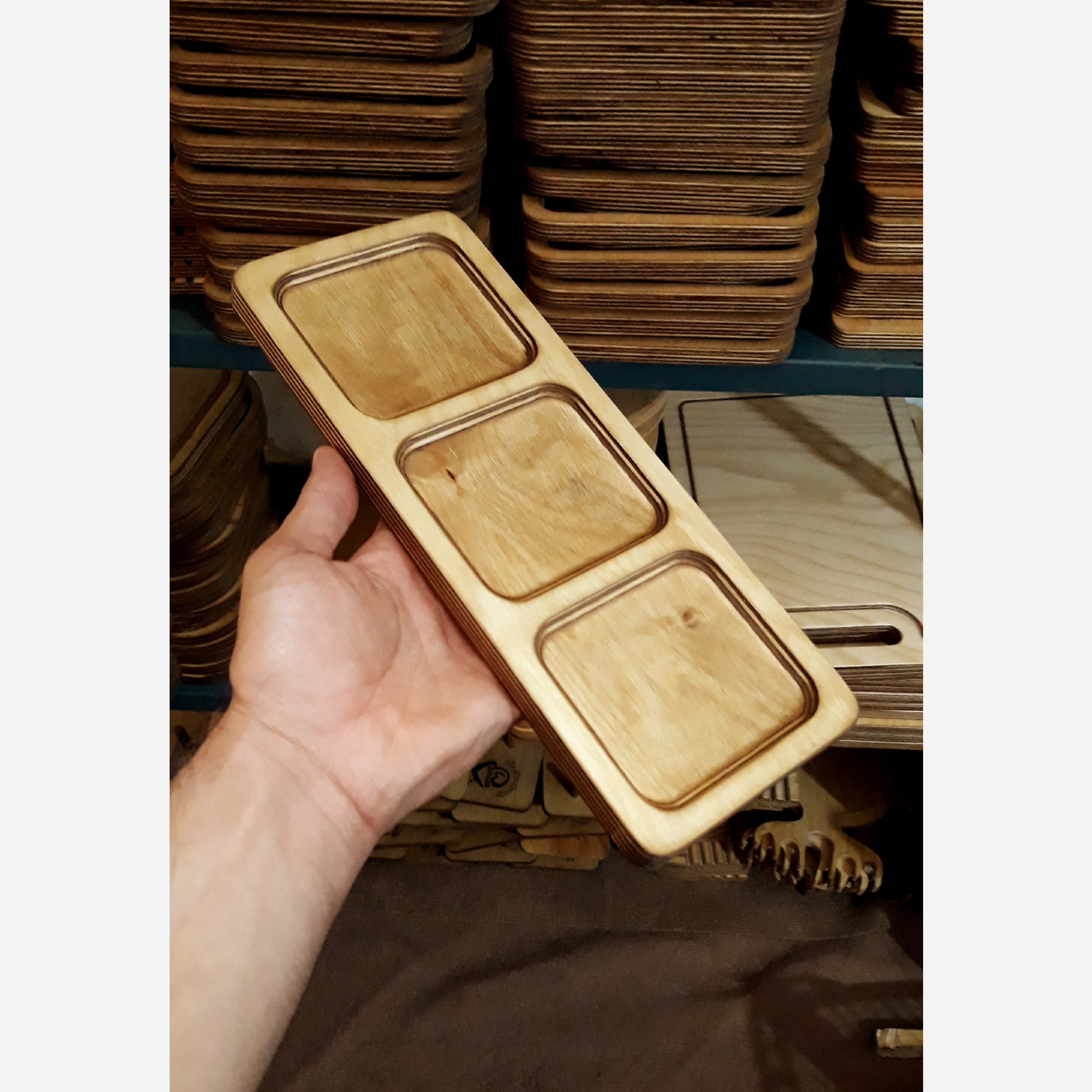 ظرف چوبی اردو خوری چوبی 3 خانه مربع مبلمونسرا مدل 264636