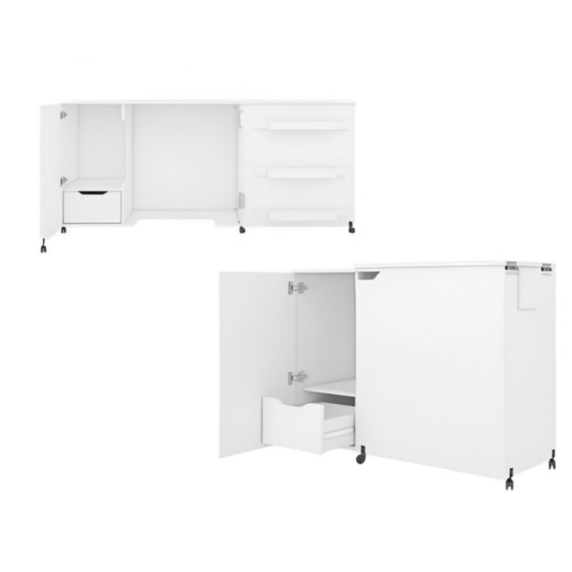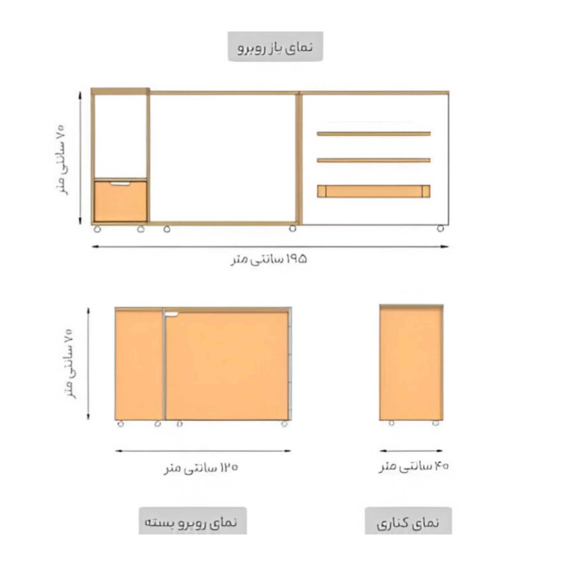 میز خیاطی همه کاره مدل بانوژ نازخاتون . یه میز خیاطی همه کاره تاشو که نیاز شما رو برای یه خیاطی حرفه ای برطرف میکنه . چند تا استند برای دوک نخ و ملزومات خیاطیتون داره یه کشو بزرگ برای اقلام غیر ضروری و محفظه مخصوص چرخ خیاطی داره که بعد از کار بتونید میزتون رو جمع کنید و به عنوان یه کنسول زیبا تو محیط خیاطیتون ازش بهره ببرید . این میز به چرخهای صنعتی گردان مجهز شده که به راحتی بتونید جابجاش کنید، همچنین یه صفحه تاشو داره که ابعاد میز شما رو دوبرابر میکنه برای مواقعی که میخواید الگوکشی کنید یا برش بزنید . از این صفحه تاشو حتی به عنوان میز اتو هم میتونید استفاده کنید . ابعاد این میز در حالت بسته 120 سانت در ارتفاع 70 سانت و به عمق 40 سانت است که در حالت کاملا باز شده طول کار به 195 سانتیمتر تبدیل میشود . در ساخت این میز از MDF ایزوفام استفاده شده و با بهترین یراق آلات روز تجهیز شده که عمر طولانی برای کار شما داشته باشه . این میزو بگیری تو خیاطیت به هیچ میز دیگه ای نیاز نداری