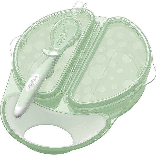 ظرف غذا کودک درب دار و قاشق دار دکتر بروان dr browns دو قسمتی دارای درب دارای قاشق قابلیت نصب کردن قاشق روی درب بدون ریزش ارگونومیک با کاربری آسان قاشق نرم و مناسب 4 ماه به بالا فاقد مواد شیمیایی و بیسفنول محصول دکتر براون تحت لیسانس آمریکا کاسه یا همان ظرف غذای دو قسمتی دکتر براون جهت جلوگیری از ریختن غذای کودک شما داخل کیف هنگام بیرون رفتن از منزل با دارا بودن قاشق با سری نرم یکی از بهترین گزینه ها برای خرید میباشد. این محصول ساخته شده از PP که هم در برابر ضربه مقاومت بالایی دارد و هم فاقد مواد شیمیایی میباشد و با قرار گرفتن در برابر گرما مواد مضر از خود ساطع نمیکند. تحت لیسانس آمریکا با ضمانت اصالت کالا.