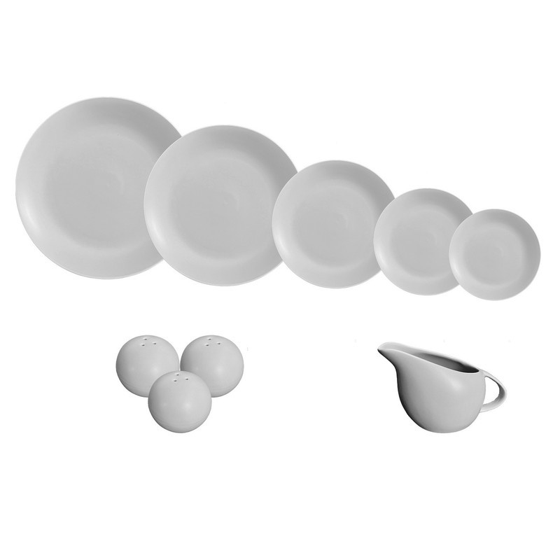 شامل 3 عدد نمک پاش یک عدد کاسه سالاد یک عدد دیس 6 عدد پلو خوری 6 عدد پیش دستی 6 عدد خورشت خوری 6 عدد پلو خوری و یک عدد سس خوری