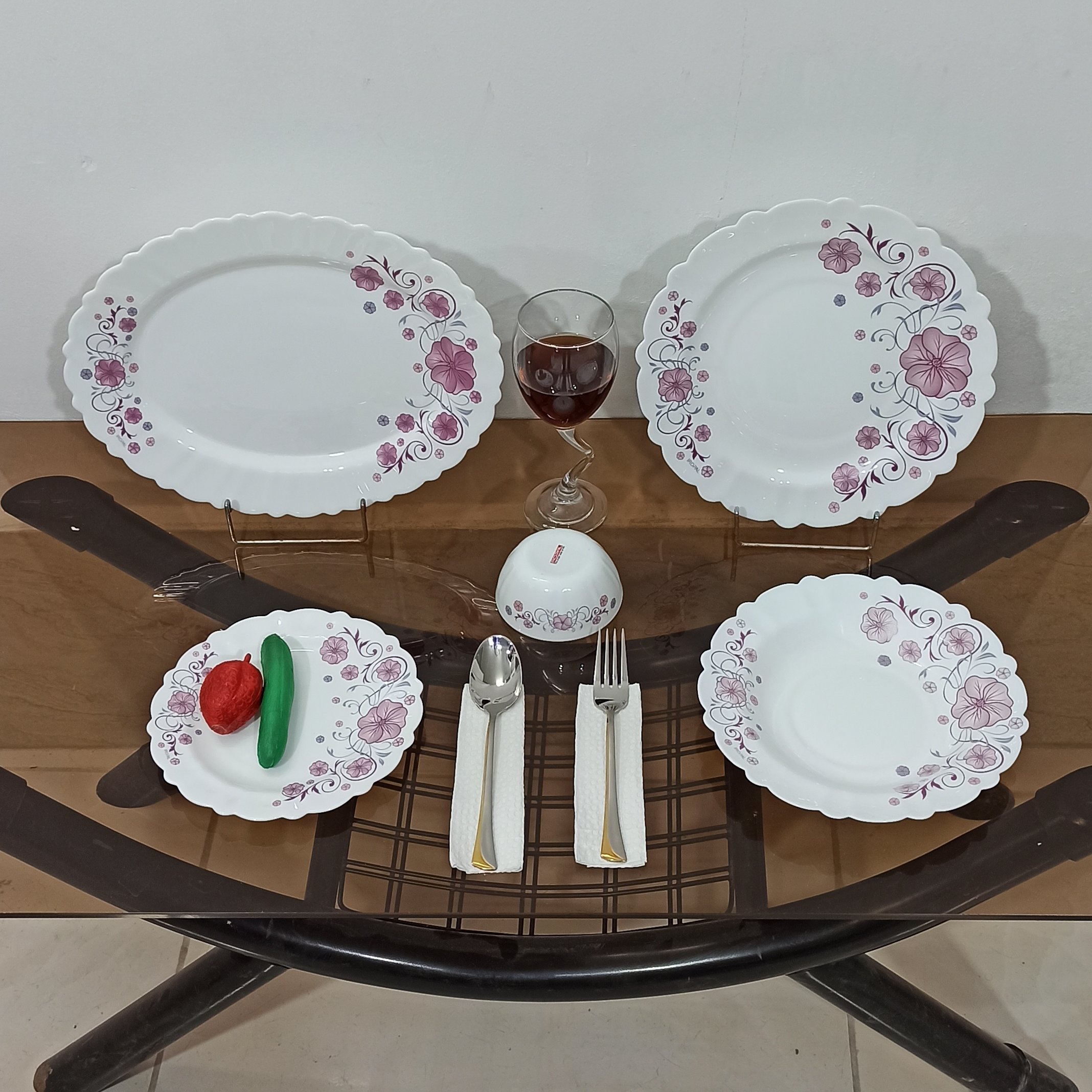 سرویس های غذاخوری آرکوپال 25 پارچه برند iropal در طرح ها و نقش های بسیار زیبا و قالبی جذاب با کیفیت رنگ بسیار عالی و ثابت توسط کارخانه ی مقصود تولید و روانه ی بازار گردیده این ظروف در ابعادی مناسب و کیفیت قابل رقابت با آرکوپال فرانسه و اسپانیا تولید شده همه ی اقلام این ظروف قابلیت قرارگیری در ماشین ظرفشویی و مایکروفر را دارا می باشند و این قابلیت که در پشت ظروف نیز حک شده بیانگر مقاومت بالای آن در مقابل شوک حرارتی و همچنین ثابت ماندن رنگ آن تحت شرایط پر فشار ماشین ظرفشویی می باشد این سرویس شامل : 6 عدد بشقاب برنج خوری 6 عدد بشقاب خورش خوری 6 عدد پیش دست 6 عدد پیاله ماست خوری و 1 عدد دیس بیضی شکل می باشد این ظروف در بسته بندی زیبا و مطمئنی قرار دارد که برای جابجایی های مجدد نیز می توانید از آن استفاده کنید