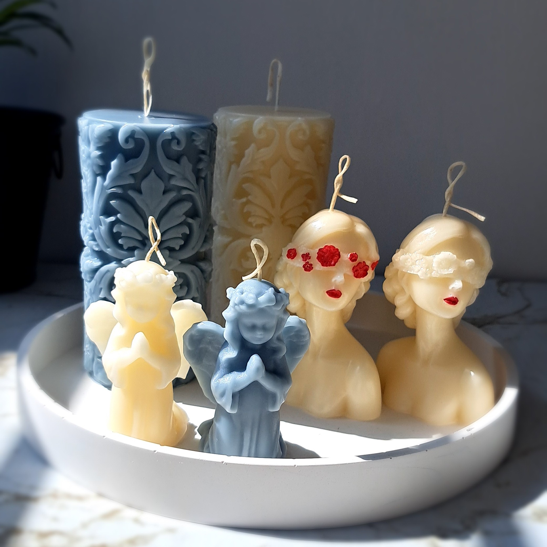 جنس این کار از پارافین درجه یک ارتفاع شمع فرشته تقریبا ۸ سانتی متر و طول و عرض آن تقریبا ۵ سانتی متر میباشد.