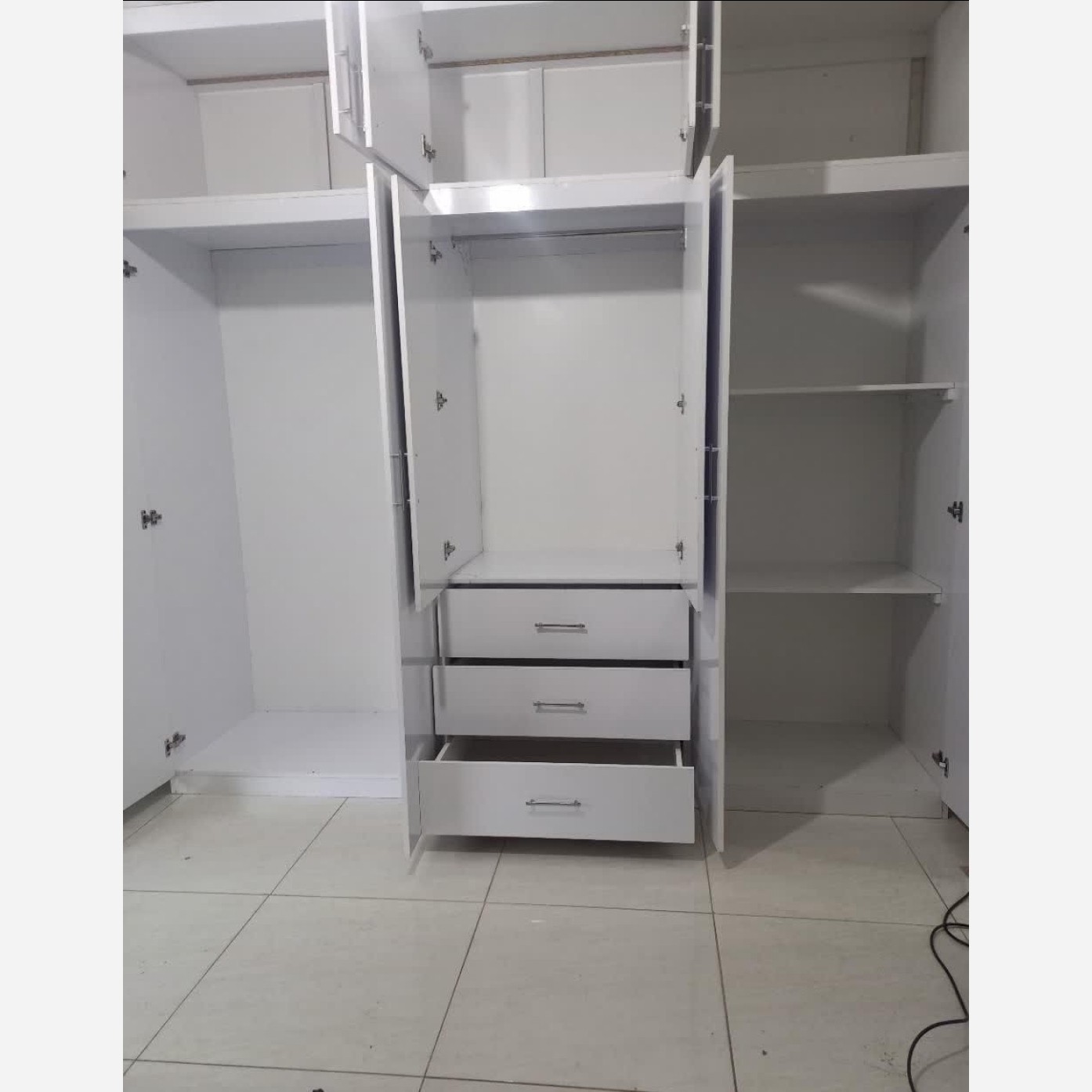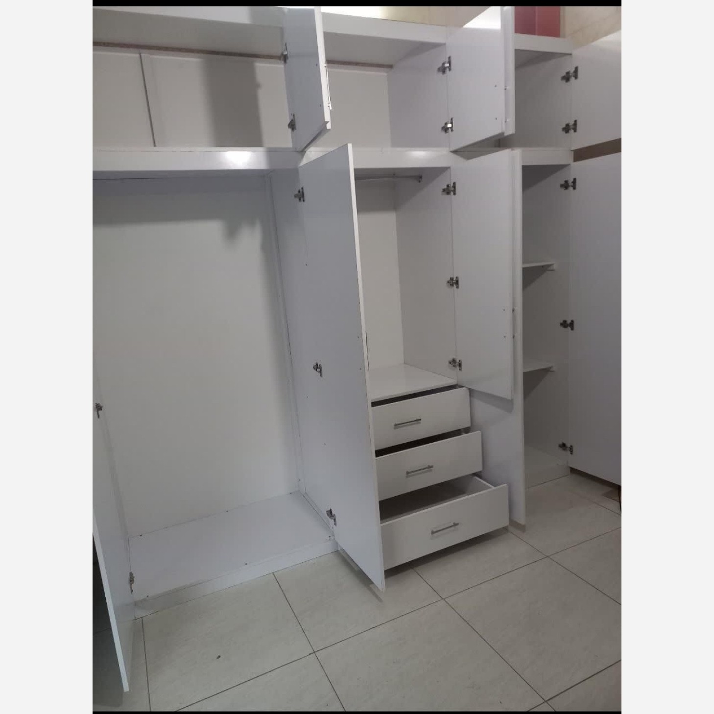 کمد دیواری متحرک این کمد دیواری به 6 تکه مجزا تقسیم شده و بعد از جا به جایی میتوان دوباره روی هم و کنار هم قرار داد مناسب مستاجران بدون نیاز به نصاب فقط با یک دریل میتونید خودتون باز کنید و ببندید جنس ام دی اف برند نوین چوب رنگ سفید دارای سه کشو ، چوب لباسی و دوتا طبقه ابعاد: طول 3 متر ارتفاع 260 عمق 60 ابعاد قابل تغییر است ✅ ریل ها جنس خوب لولا ها آرام بند جنس خوب ارسال رایگان و بسته بندی مناسب