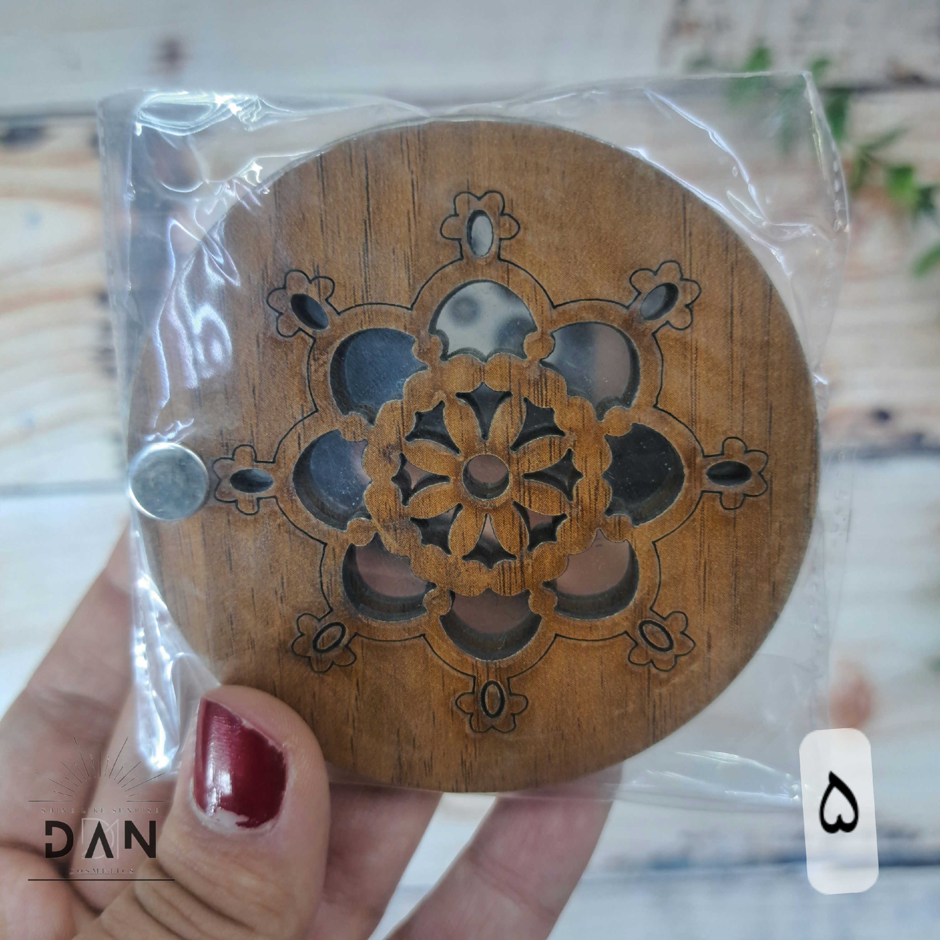 آینه چوبی طرح دار در طرح های مختلف با کیفیت بالا موجود شده این محصول کوچک بوده و به راحتی در کیف جا میگیرد و محکم و پر کاربرد است. ویژگی های محصول: جنس چوبی کیفیت آیینه بالا چرخشی طرح سنتی در شش طرح متفاوت