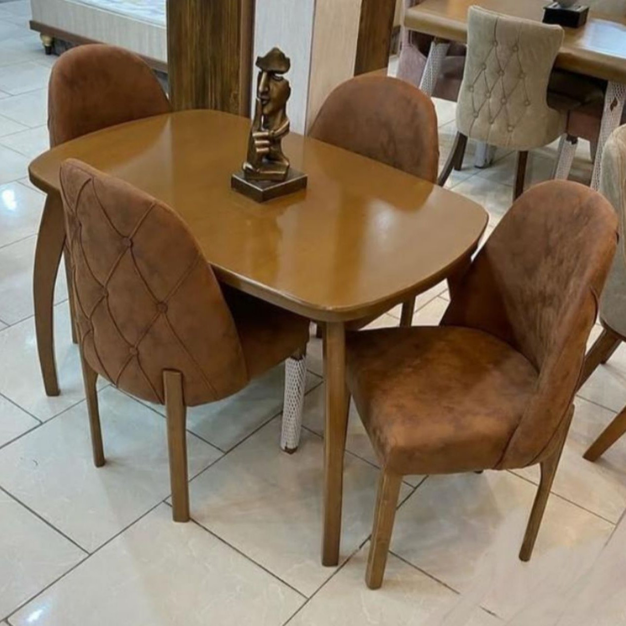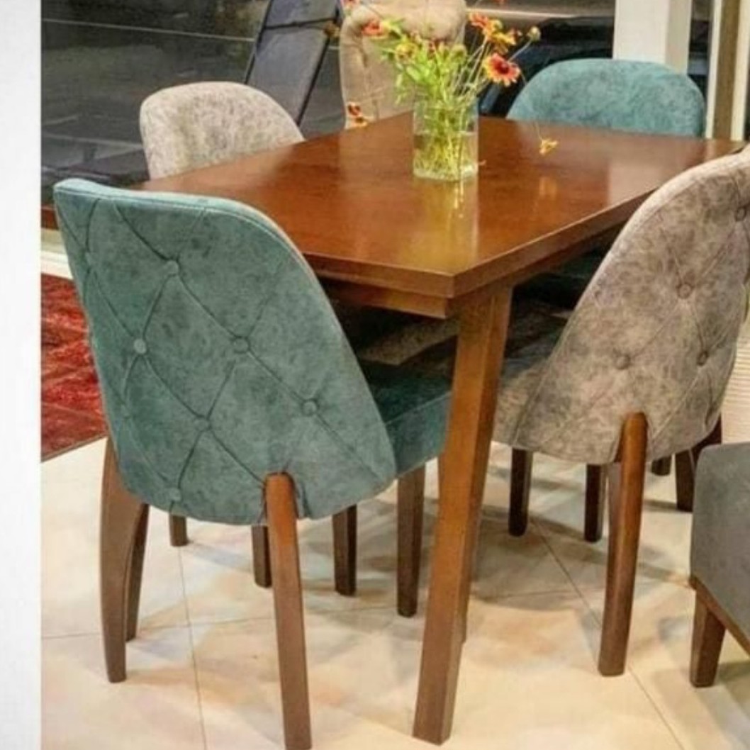 جنس صفحه میز ام دی اف، جنس پایه های میز و صندلی ها چوب روسی
