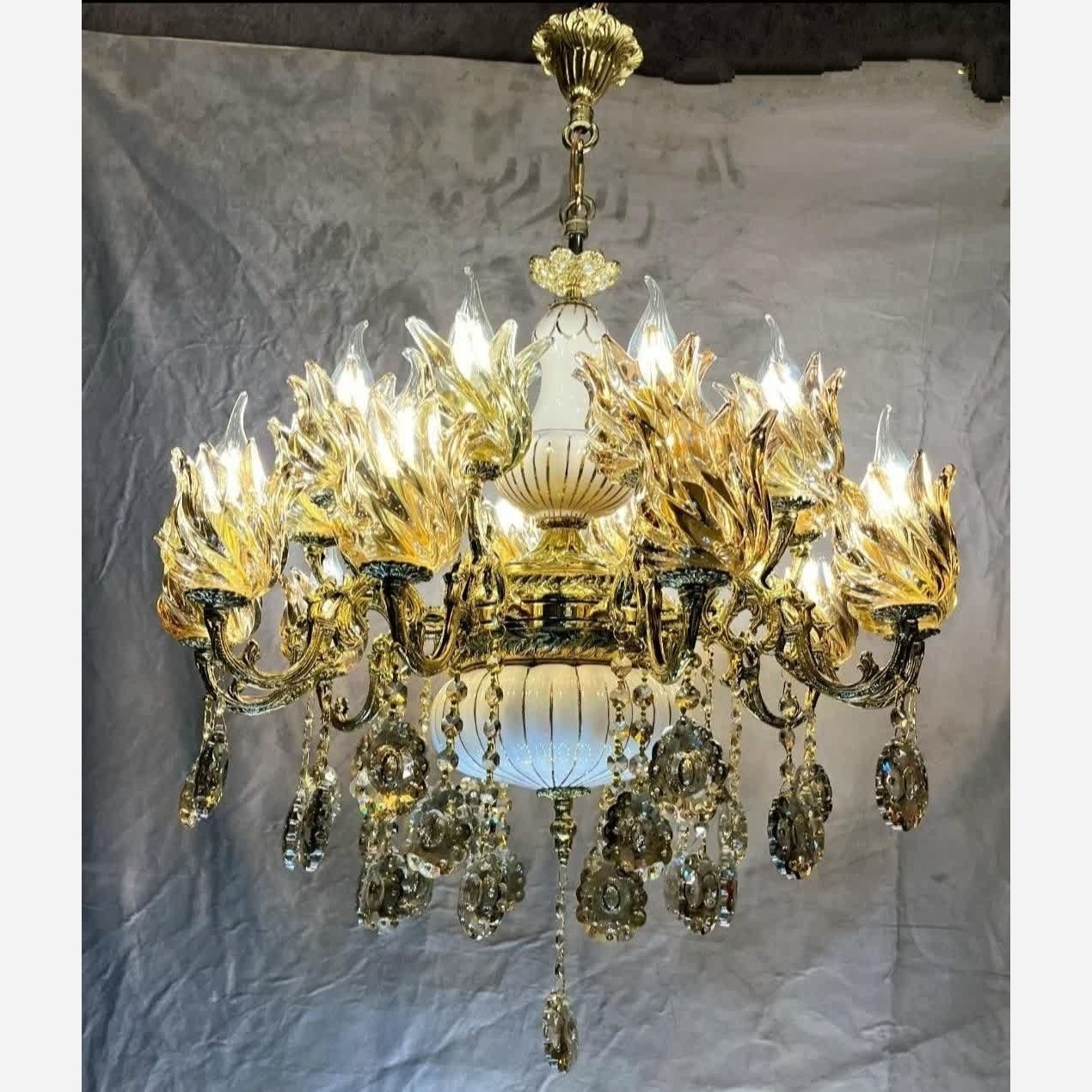 لوستر 10 شاخه 20 شعله ترکیب برنج و سرامیک مبلمونسرا مدل 245274