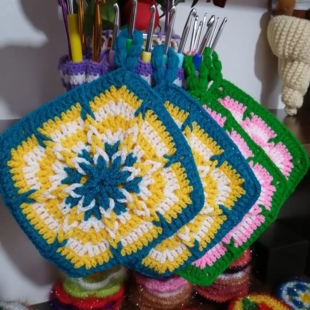 این دستگیره بافته شده با کامواهای آکریل تاپ ایرانی و قلاب ابعاد 14 در 14 مناسب آشپزخانه و جهیزیه عروس خانمهای خوش پسند سفارش پذیرفته می شود با رنگهای مورد علاقهی خودتان