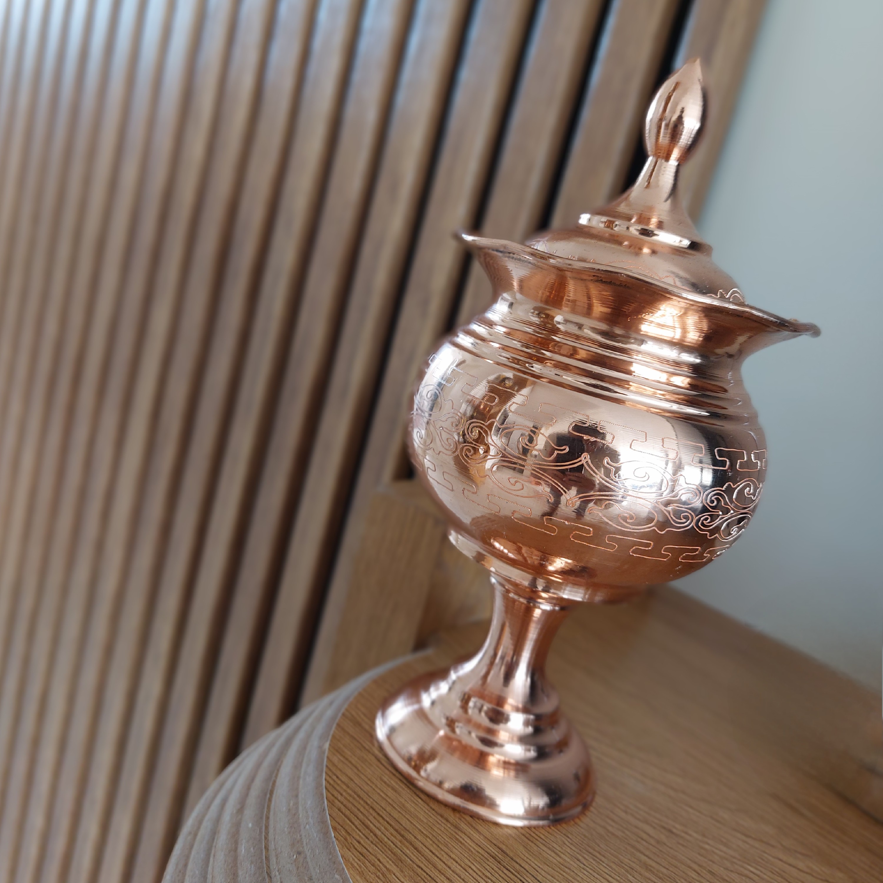 شکلات خوری نقلی پایه دار مسی به عنوان قندان پایه دار هم عالی میشه نانو شده و رنگ ثابت ساخته شده از ورق ضخیم و سنگین مسی کیفیت تضمینی طرحدار