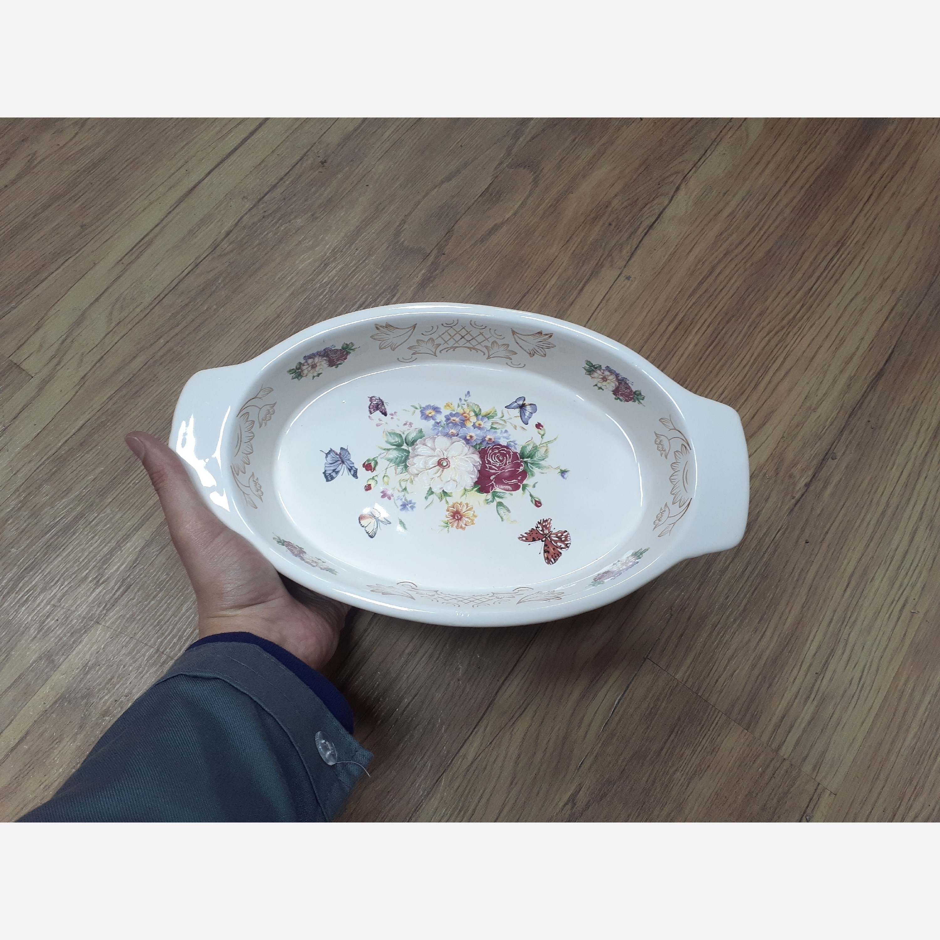 تابه مرغ خوری سرامیکی گلدار دسته دار بیضی سایز متوسط کیفیت عالی مبلمونسرا مدل 270668
