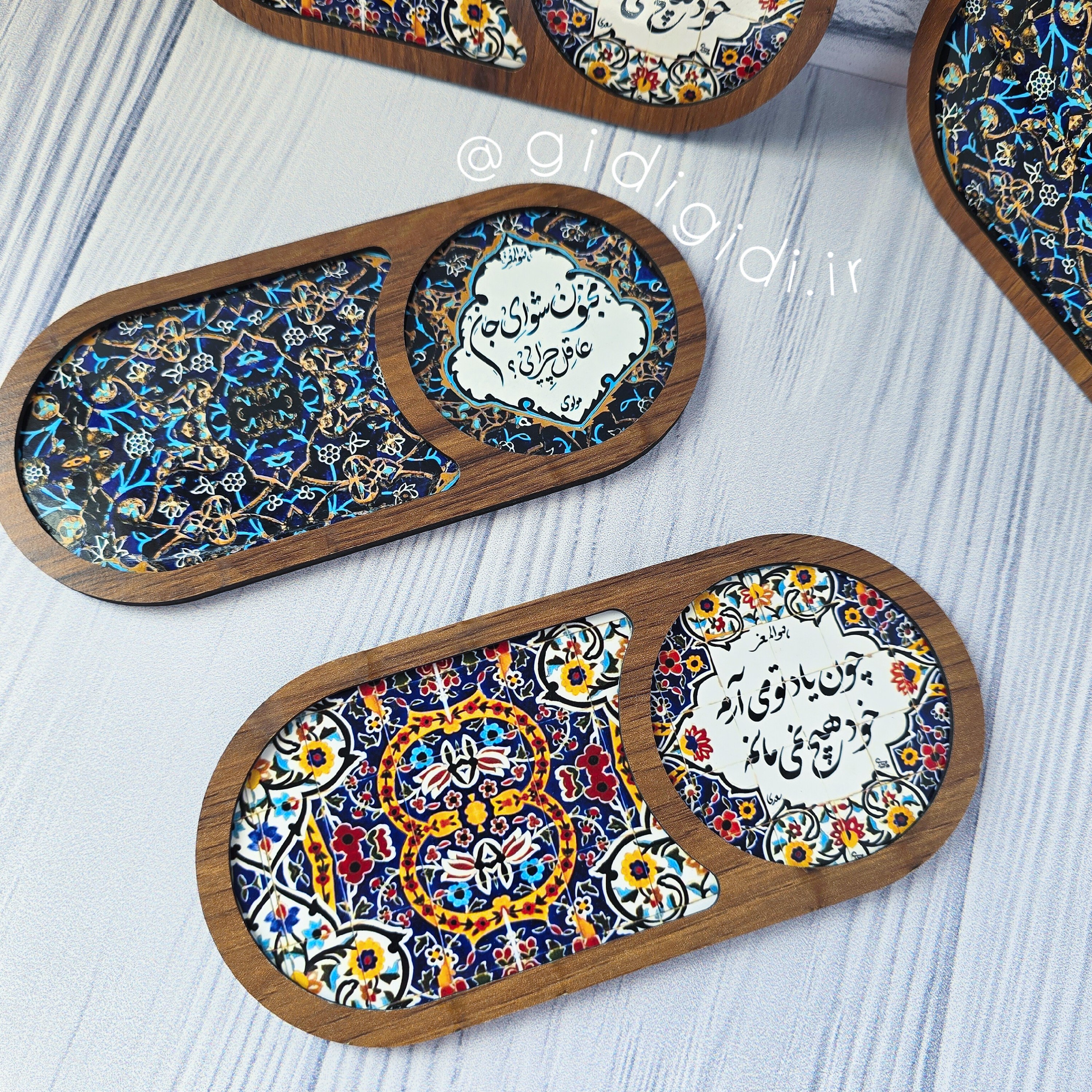 زیر لیوانی چوبی سنتی در دو طرح جنس چوب شش میل
