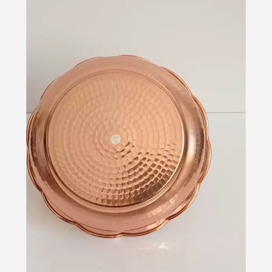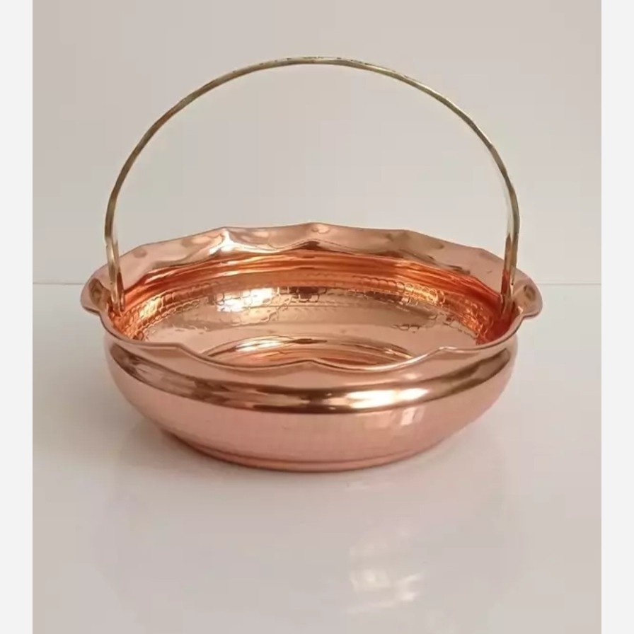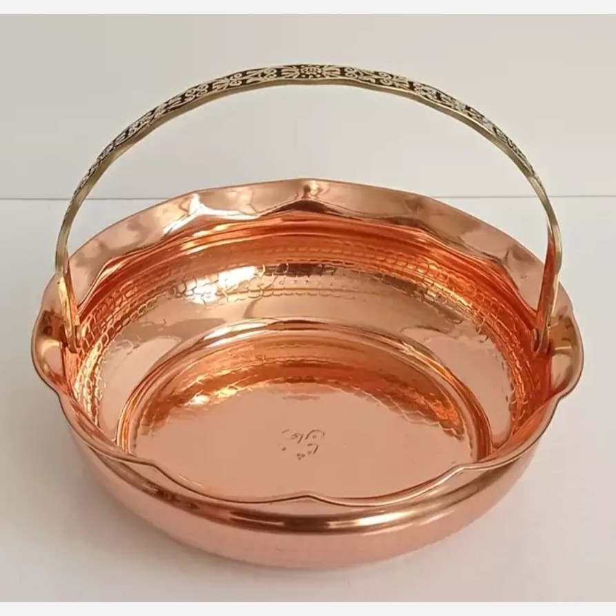 این ظرف مسی با طراحی منحصر به فرد و کیفیت عالی ساخته شده است که بیشتر برای شکلات و شیرینی و آجیل و... کاربرد دارد .دسته از جنس برنج ریخته شده و طرحدار میباشد و دارای پرچ از دو طرف است و کل کار به صورت نانو شده است و تغییر رنگ نمیدهد.