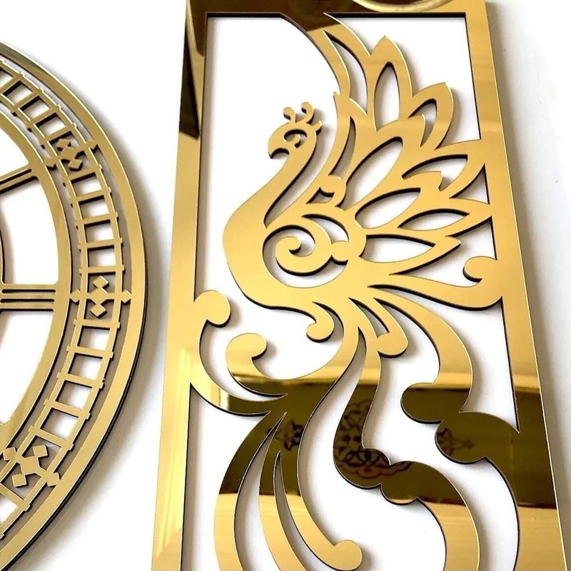 ساعت دیواری الیکسار، ترکیب هنر و زمان . این ساعت دیواری به همراه دو تابلوی طراحی شده با دقت، با الگوهای پیچیده و تابلوهای طرح زیبای سیمرغ و اعداد رومی کلاسیک در برابر پسزمینه طلایی، جلوهای شگفتانگیز به فضای شما میدهد. ساعت دیواری الیکسار، ترکیبی از کارایی و هنر را به ارمغان میآورد و تبدیل کردن زمانسنجی به یک عمل هنری میشود. با این قطعه لوکس، فضای زندگی خود را با یک مرکز تزئینی شگفتانگیز تزیین کنید که سلیقهی شما را به خوبی نشان میدهد. ساعت دیواری سیمرغ یکی از محصولات برند محبوب الیکسار است که بهمراه دو عدد تابلوی سیمرغ در بسته بندی ویژه الیکسار ارائه میگردد.