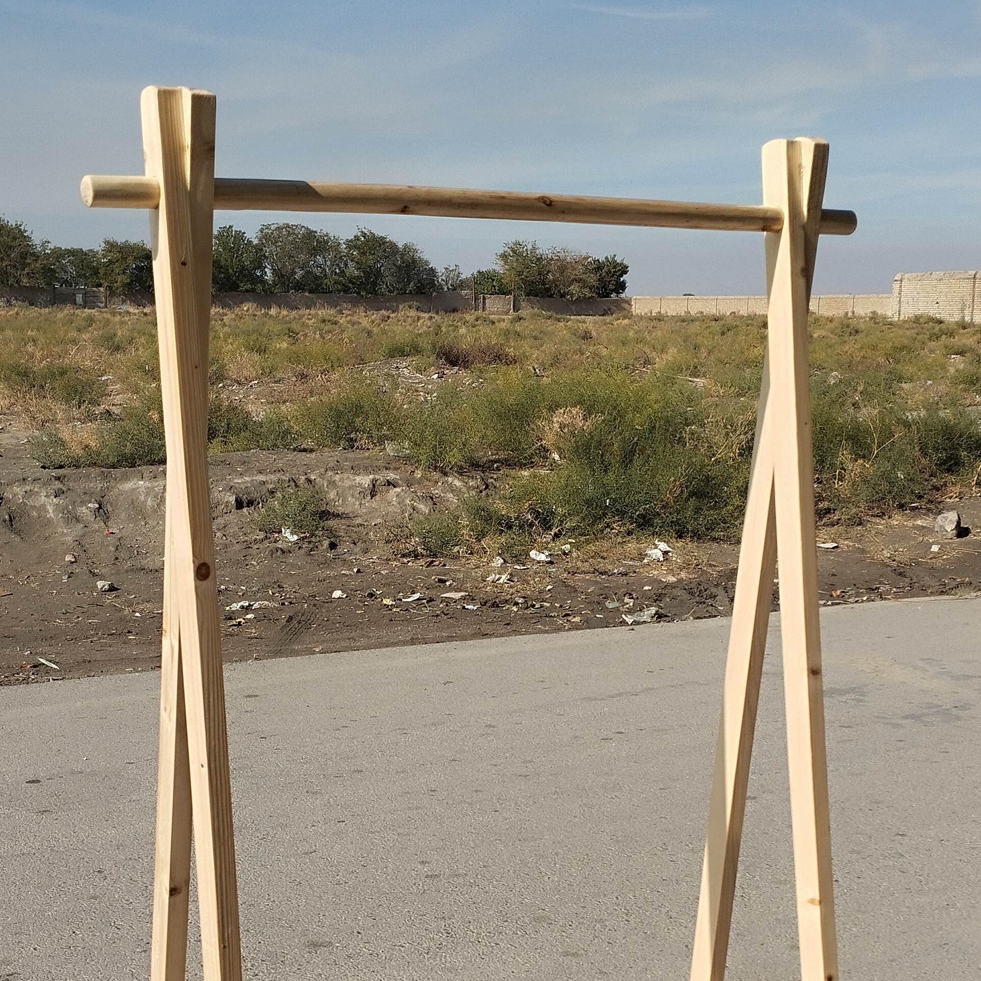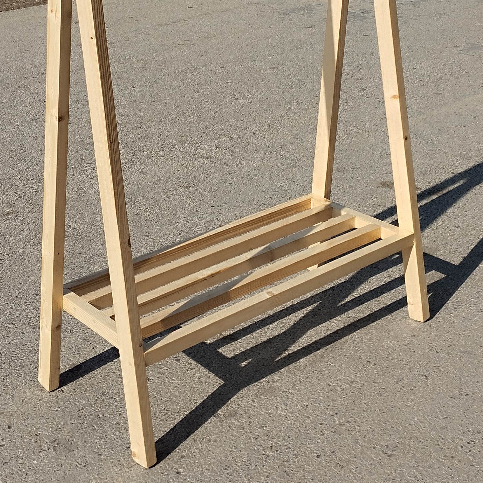 رگال لباس چوبی مدل یک طبقه سرخپوستی در ابعاد ارتفاع 150 و طول 85و عمق 45 رنگ کرم جلا مناسب استفاده در منازل و مزون های لباس و همچنین یک رگال خاص و کاربردی برای آنلاین شاپ ها ارسال با کالارسان چاپار و دکاپست به سراسر کشور ارسال رایگان