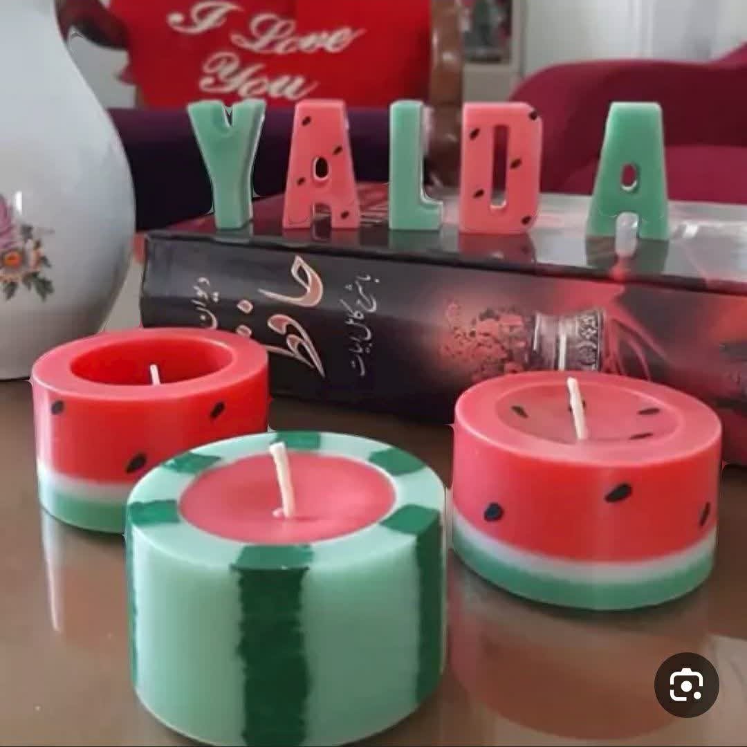 شمع جذاب وشیک یلدایی ،انتخاب افرادباسلیقه هندونه تمام شمع و ترکیب شمع وجای شمع سنگ مصنوعی گزینه ای برای شب یلدا