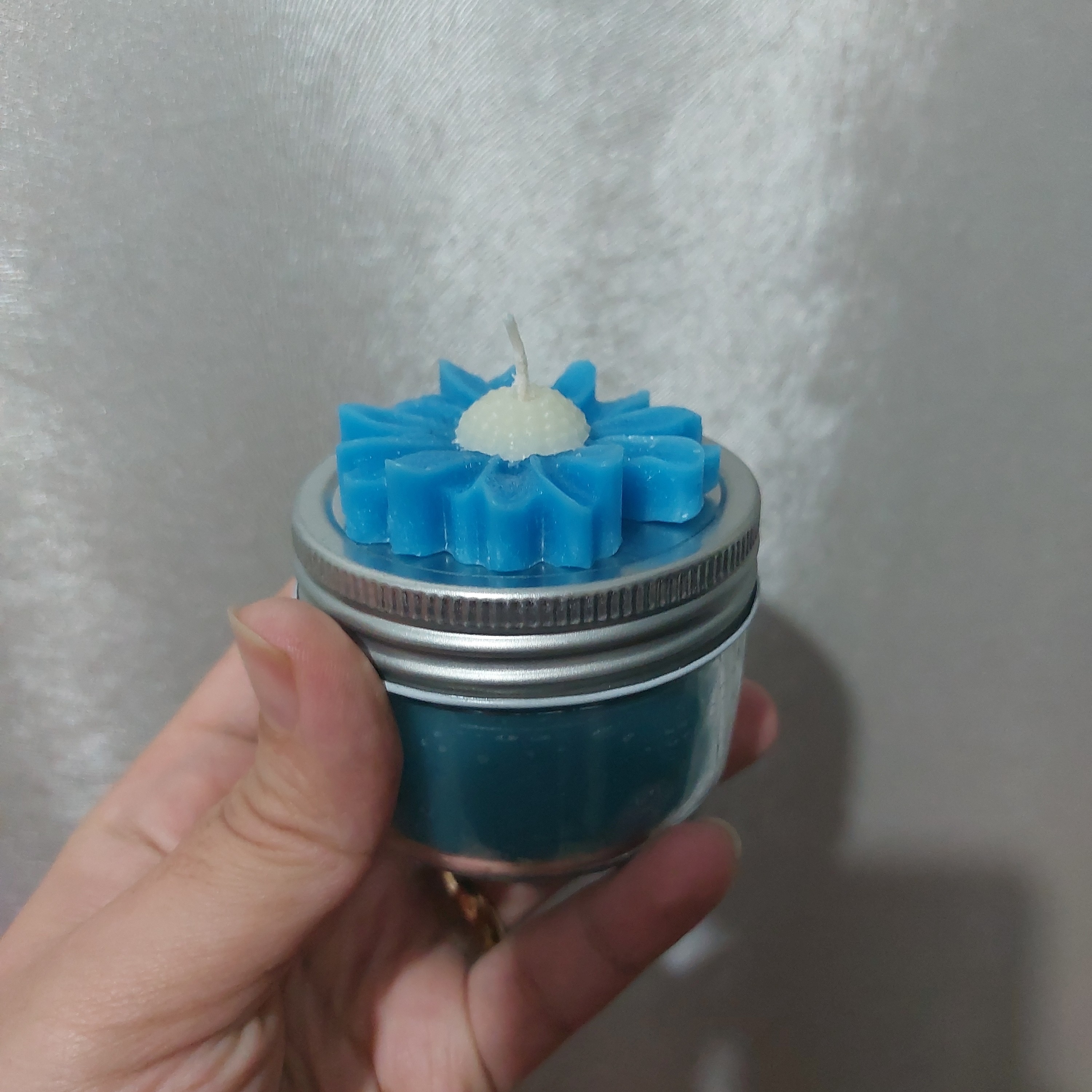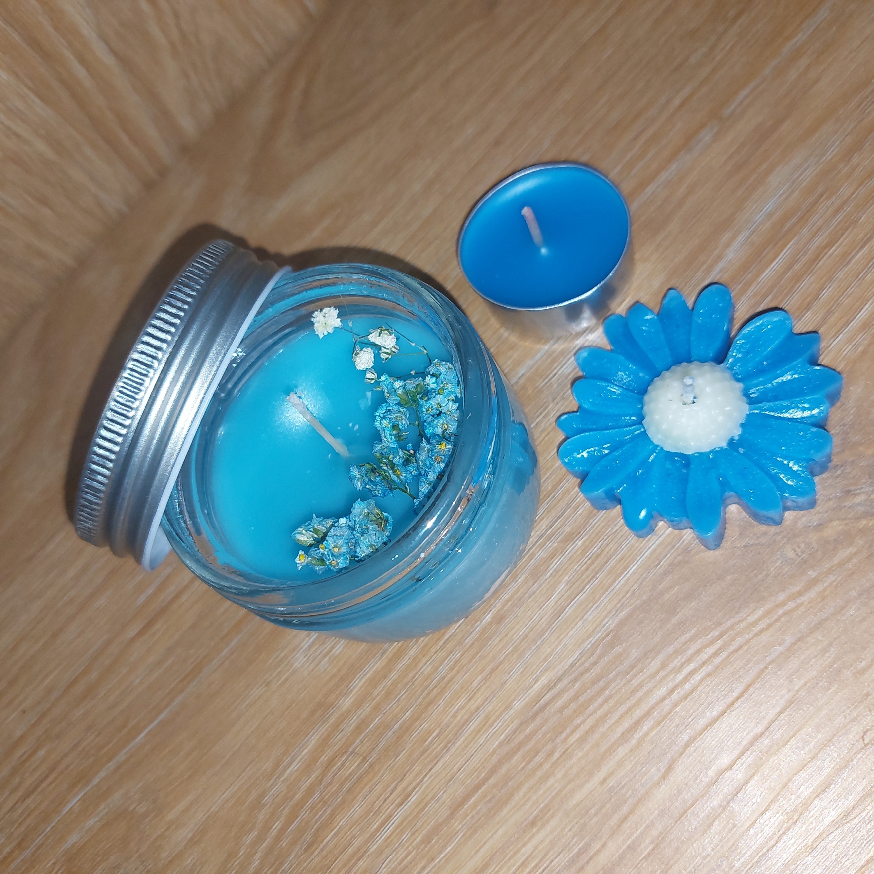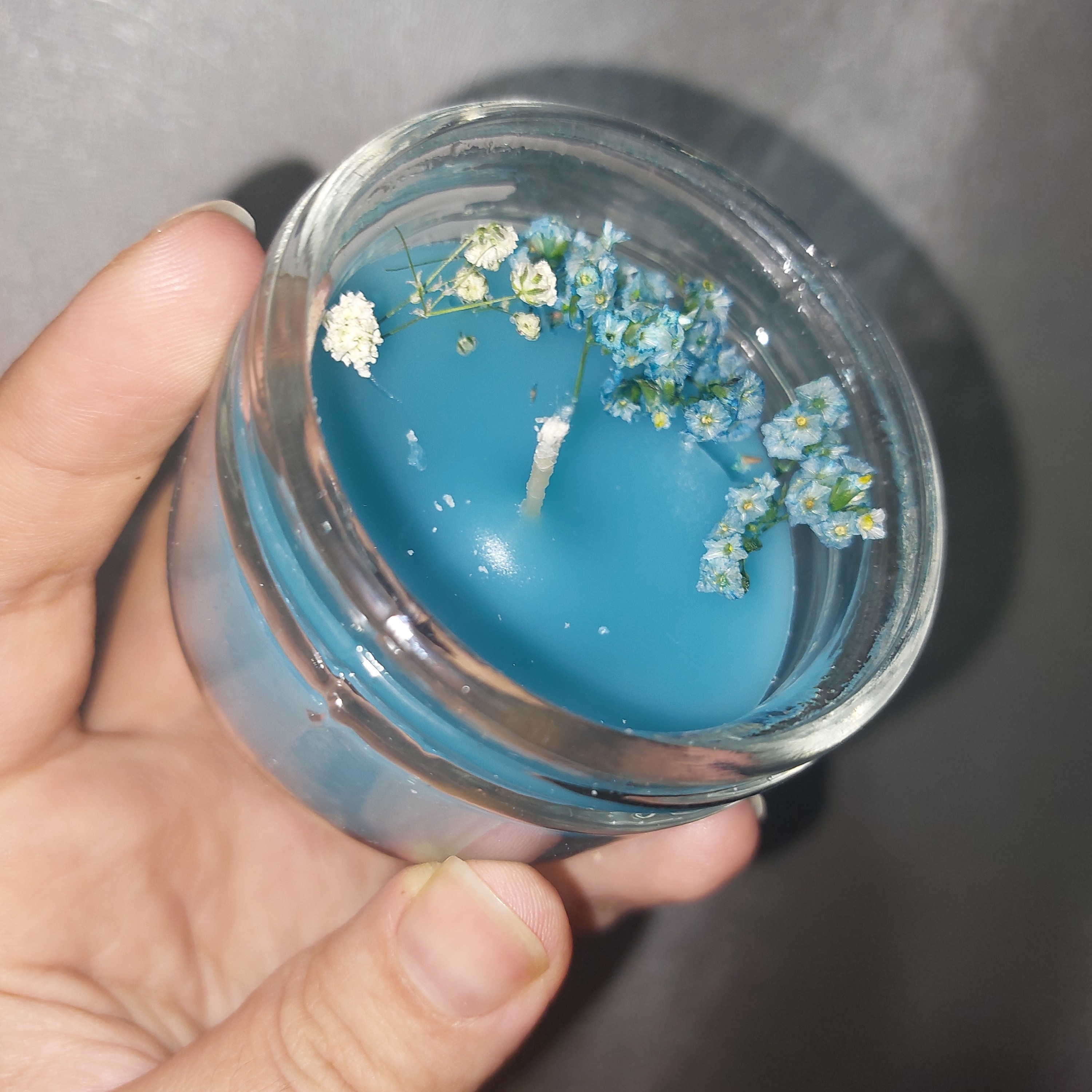 شمع جار آبی مدل گل عروس گل ژیپسوفیلا