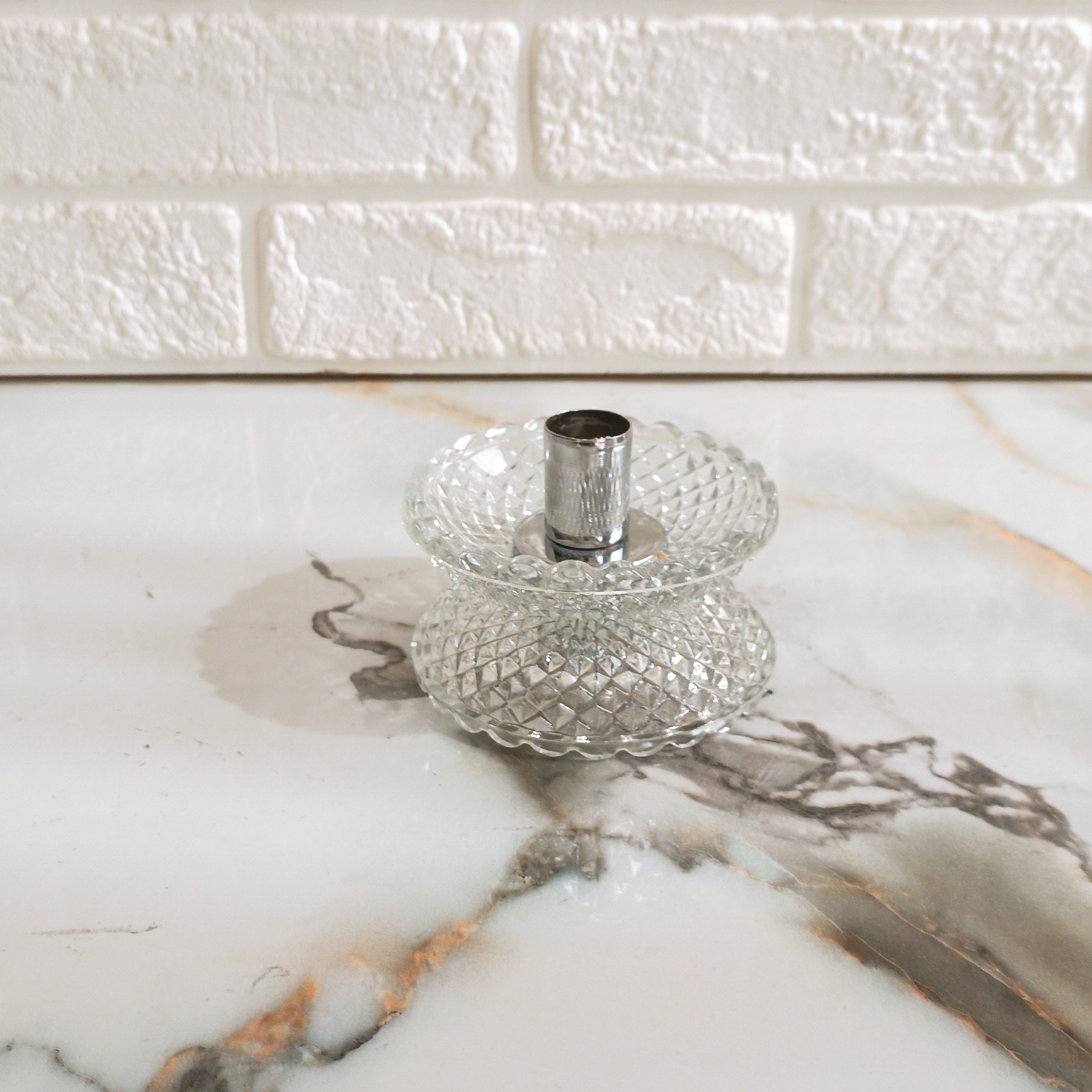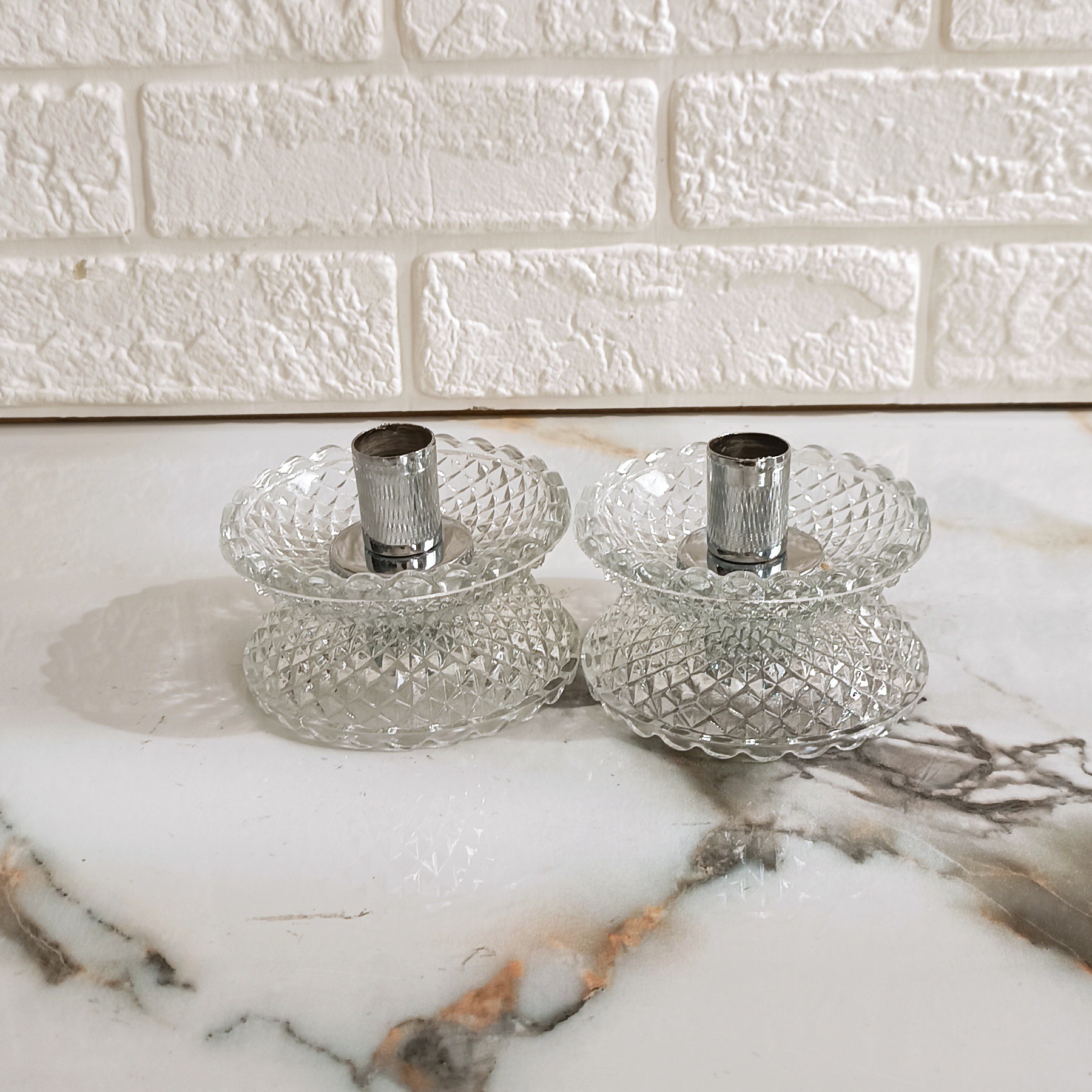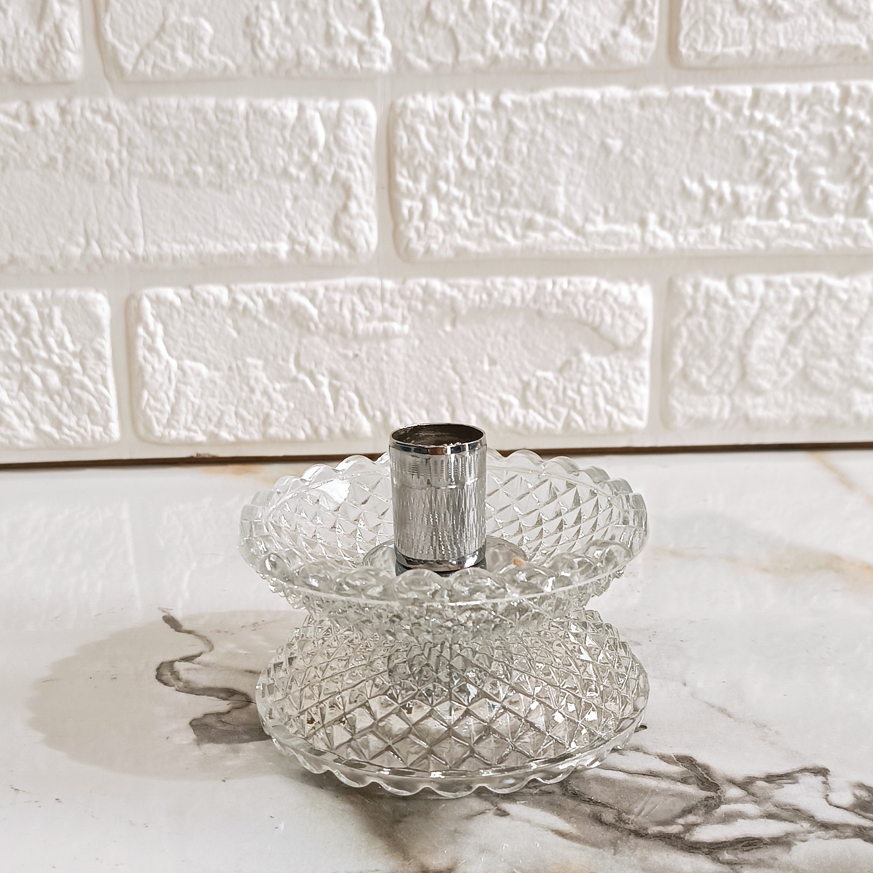 شمعدان بلوری سایز کوچک دو کفی شیشه ای مبلمونسرا مدل 279744