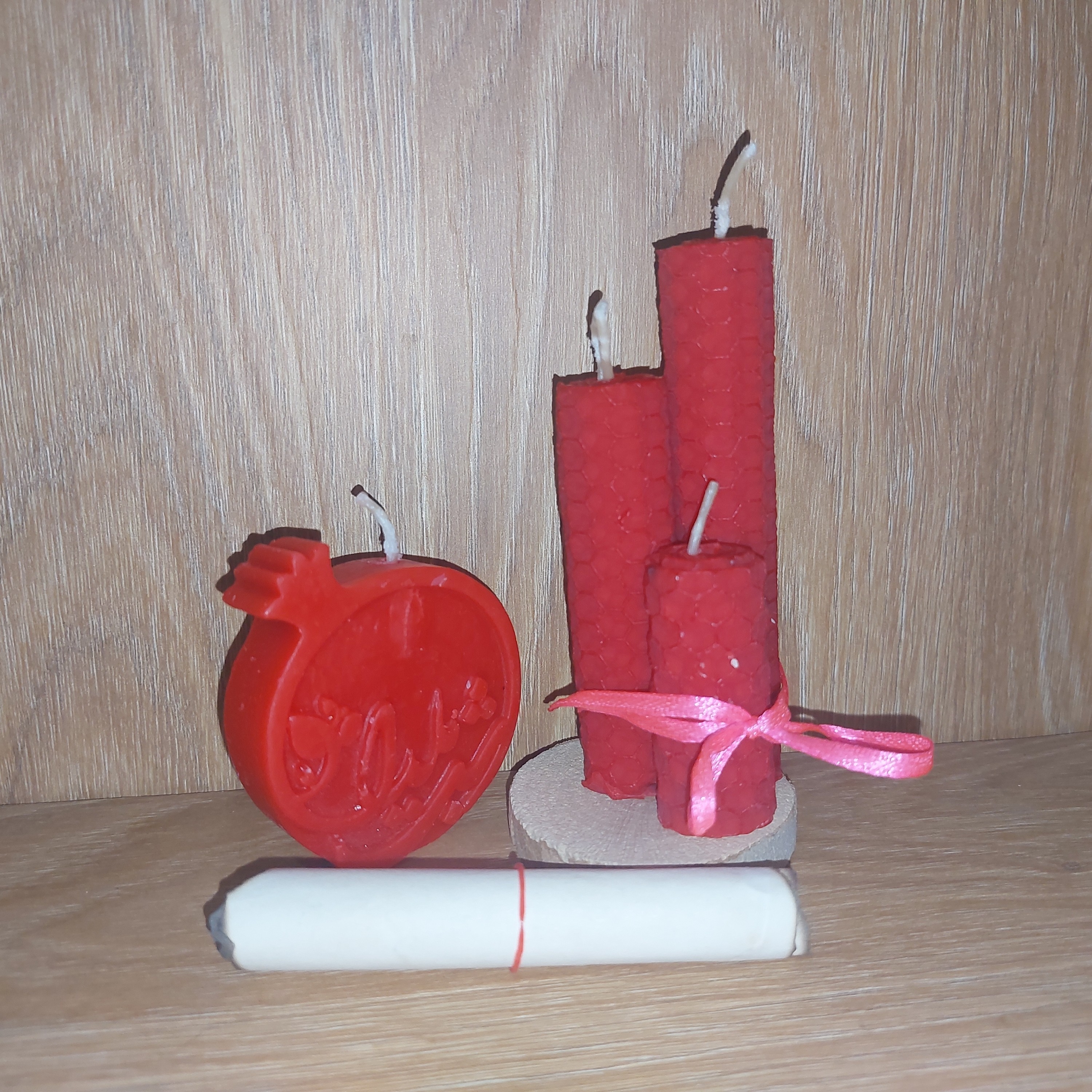 ست 3عددی شمع بیزوکس موم عسلی همرا با شمع انار یلدامبارک و فال حافظ